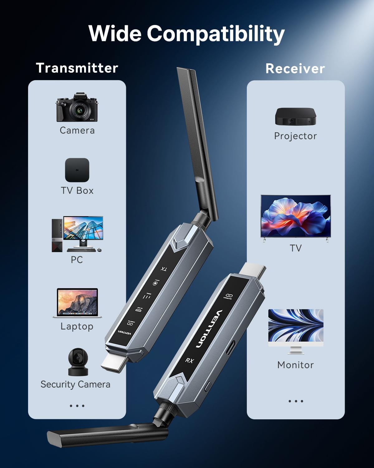 | Other Special Features of the Product | Real-Time LED Indicators, MIMO&LDS Tech, 262FT/80M Long Transmission Range, Multi-Screens(Up to 6), No Overheated, ZeroDrop,No Delay,50FT/15M through walls (avoid thick walls or large obstacles), Both Powered by USB 5V1A Power Source, Free USB-C to HDMI Adapter included-Wide Compatible with All HDMI / USB-C HDMI Devices. Support Windows/Mac-Book Extender Mode. |