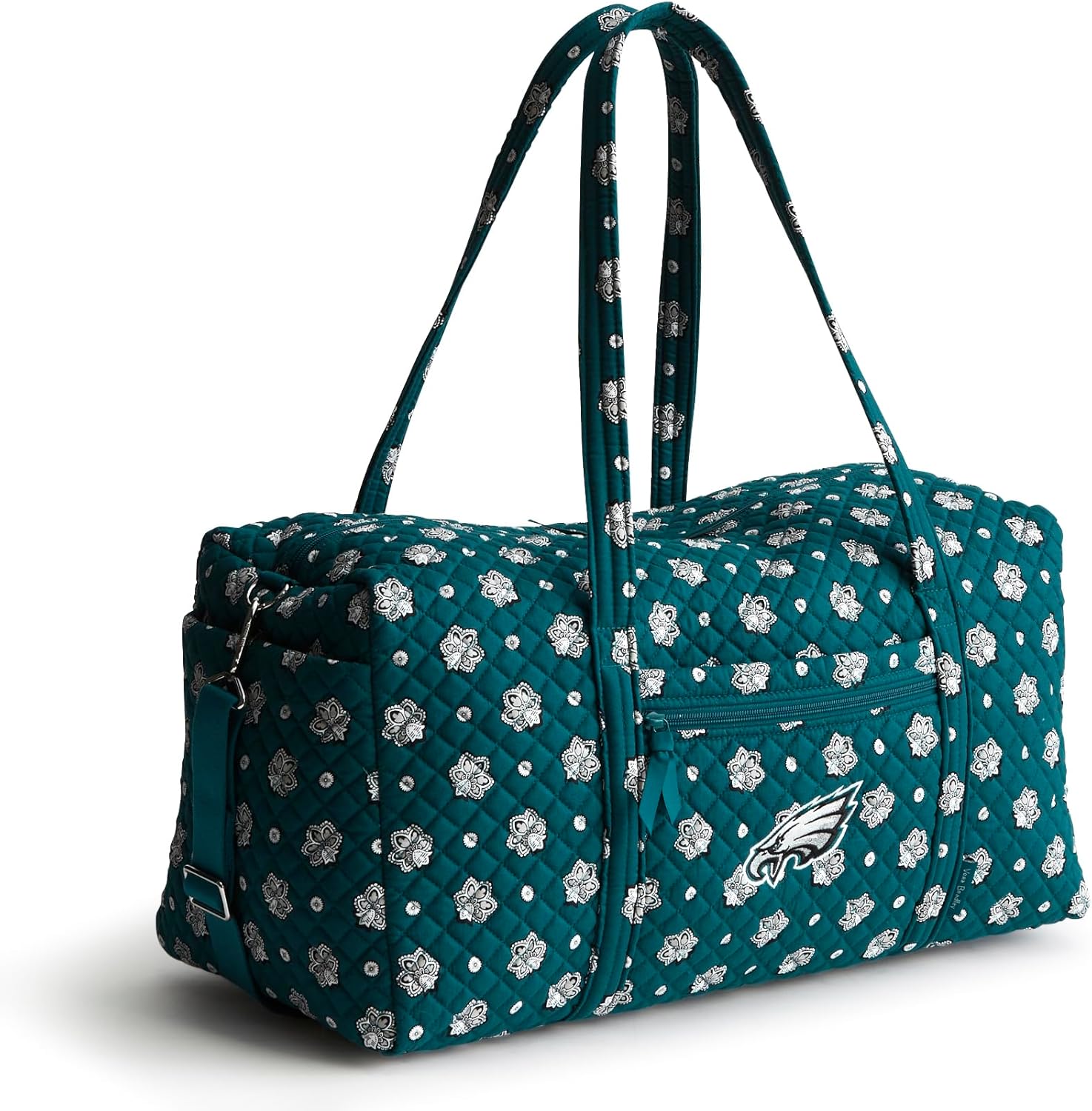 Vera Bradley is a leading lifestyle brand known for stylish, lightweight quilted cotton handbags, backpacks, travel bags, duffel bags, luggage, wallets, and accessories for women, featuring vibrant signature patterns, functional organization, RFID protection, and durable everyday design perfect for travel, work, school, and gifting. Shop stylish and lightweight Vera Bradley travel bags featuring quilted duffel bags, rolling luggage, weekender bags, carry-on totes, and travel organizers in signature cotton and microfiber prints—perfect for women’s carry-on travel, weekend getaways, and organized packing essentials. The NFL Vera Bradley duffle bag large travel duffel bag features spacious main compartment, durable straps, and lightweight design, perfect for weekend trips and gym use.