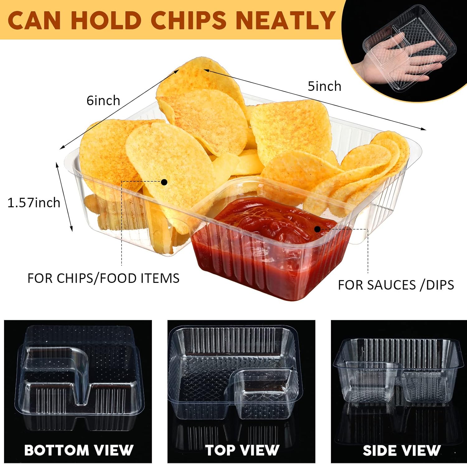 Features: Practical party supplies: The wall of the disposable snack tray is ribbed to ensure food doesn't slip off easily. These disposable compartment trays can provide attentive service to your booth and leave a deep and good impression on your guests. Compartmentalized compartments: The concession stand chip holder has 2 compartments, one large and one small, with the larger section for snacks and the smaller section for a variety of sauces, such as salad dressing, ketchup, chili sauce, toppings, etc., to add deliciousness to your snacks. Specifications: Material: plastic Color: clear Size: 15 x 13 x 3.81 cm/ 6 x 5 x 1.5 inches Capacity: 12 ounces Package includes: 500 x Plastic nacho trays Notes: Manual measurement, please allow slight errors in size. The color may exist a slight difference due to different screen displays.