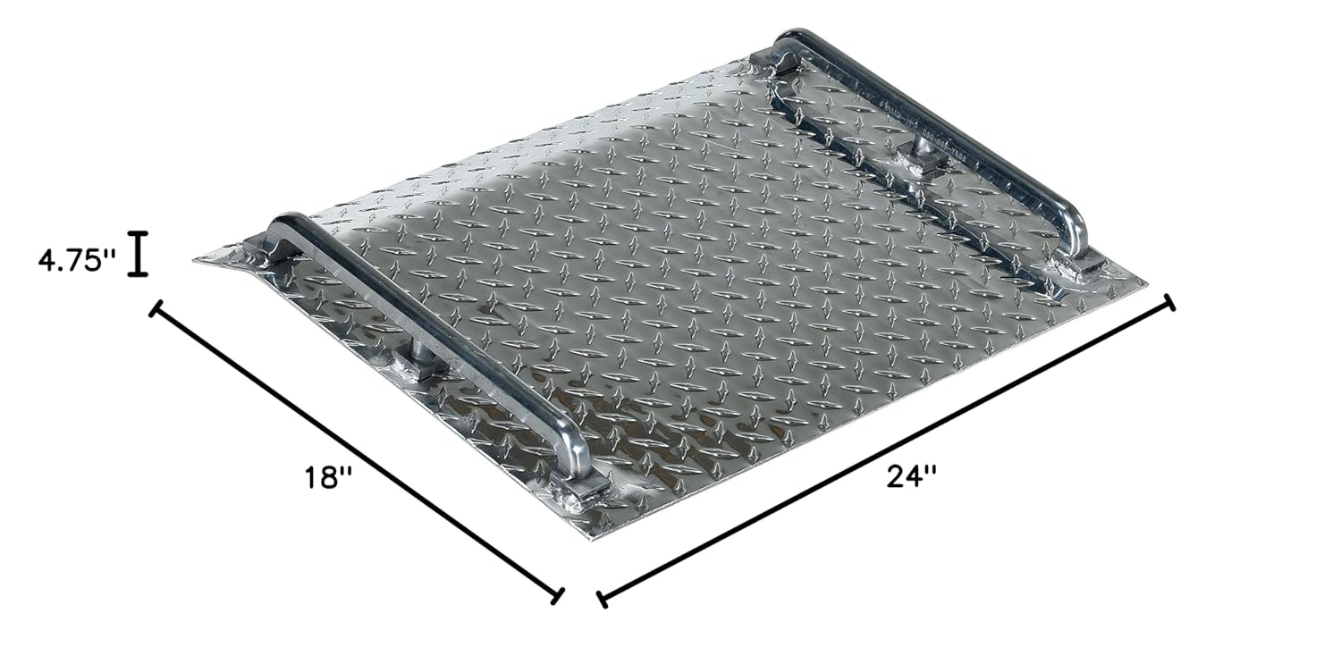 The Aluminum mini dock plate can scale curbs and door thresholds. Plate is perfect for small package delivery runs. Aluminum construction is lightweight yet durable. With a slim, compact design the plate can be taken on the go or stay committed to a designated area.