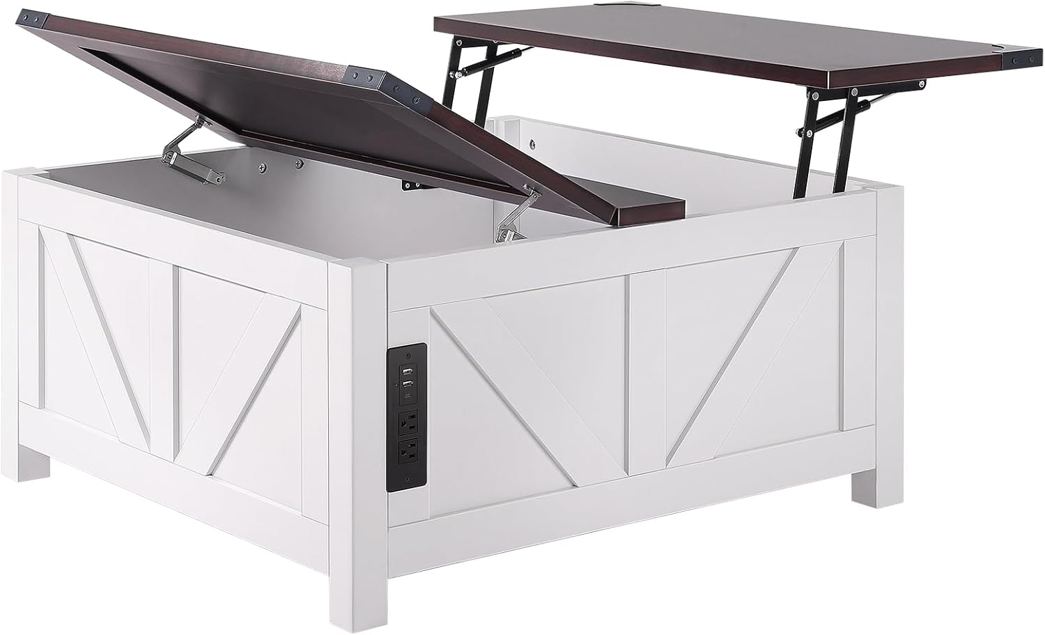 | Item Type Name | Hinged Lift Top Square Coffee Table with Built-in Power Strip, Wooden Rustic Cocktail Table for Living Room, Bedroom, Apartment, Studio, Brown & White |