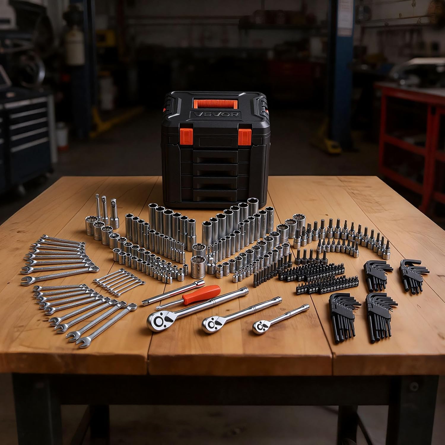 | Item Type Name | 297-Piece Mechanic Tool Kit, 1/4 in, 3/8 in, and 1/2 in Drive, SAE and Metric Socket Set, Wrenches, Screwdriver Bits, Accessories, and Storage Case, for Automotive Repair |
