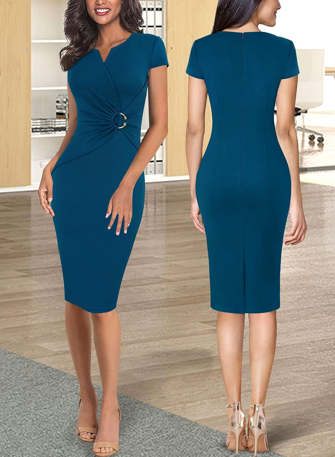| Style Name | Vfshow Womens Notch Neck Ruched Waist Office Dress |