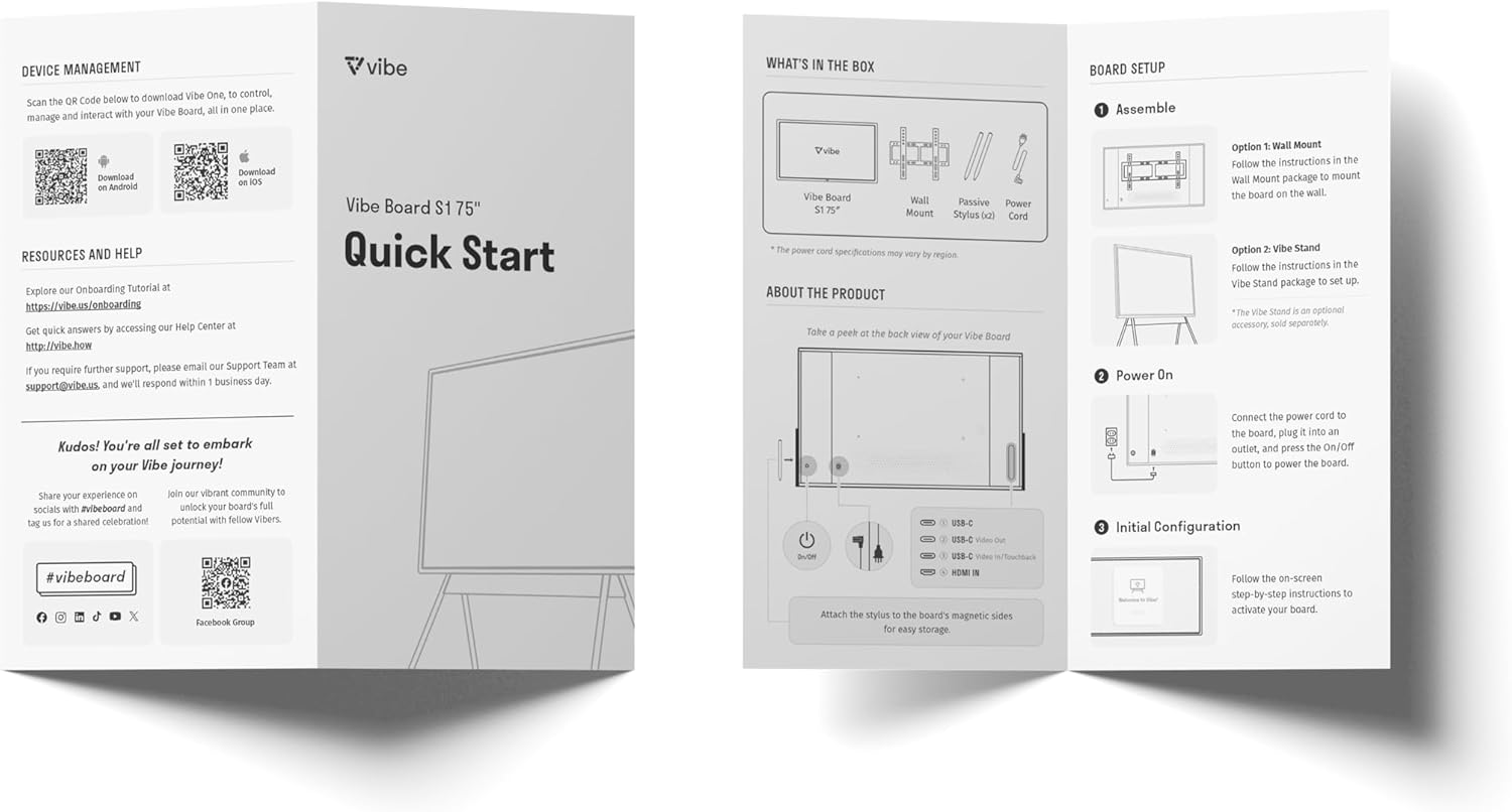 (75" Board+Stand) Vibe S1 4K UHD Smart Board, 75 Inch Digital Whiteboard for Office and Classroom, Electronic Presentation Meeting Device, Interative Touchscreen Display, ChromeOS and 250+ Free Apps