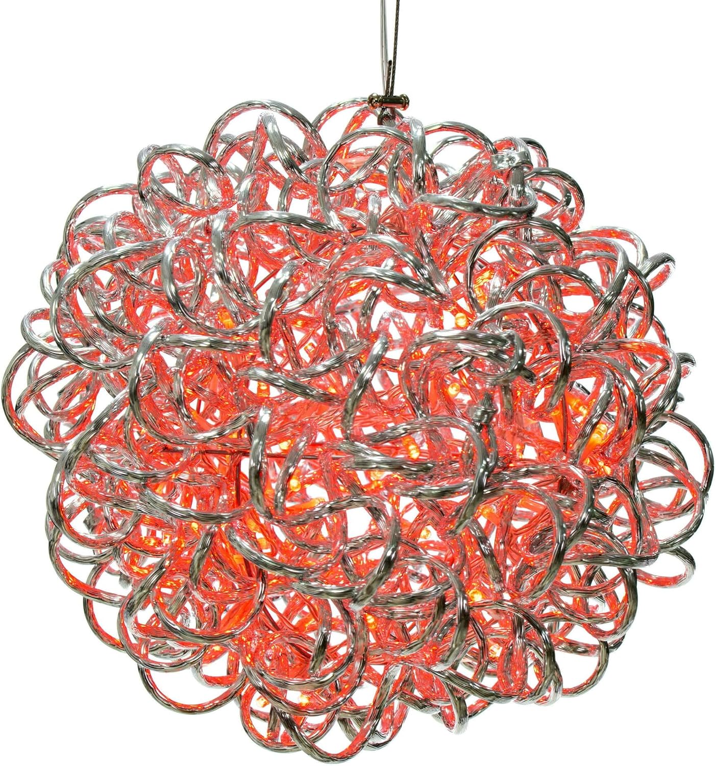 Vickerman 14" Spiral LED Green Silver Aluminum Ball 120 Lights, 15' Long Silver Plug Wire with UL Transformer for Indoor/Outdoor Use