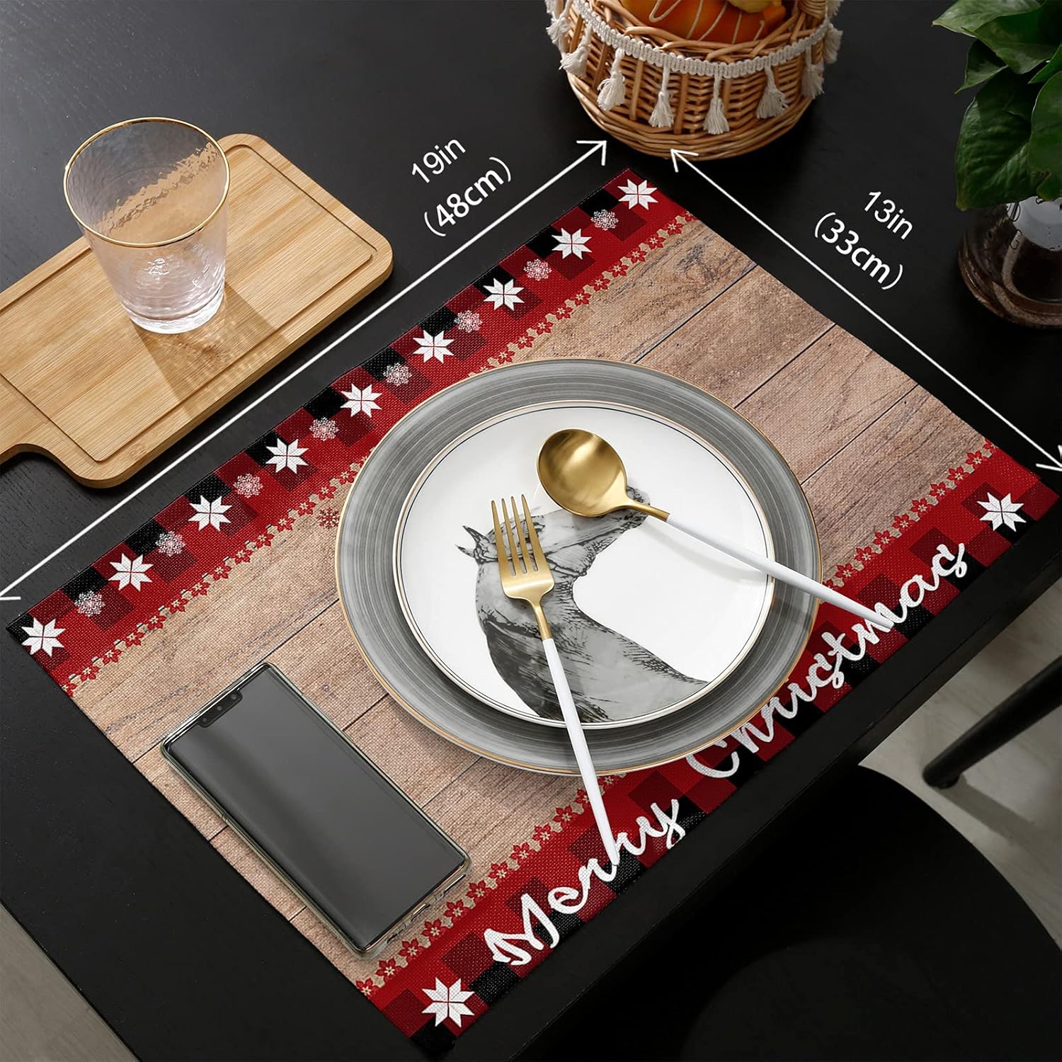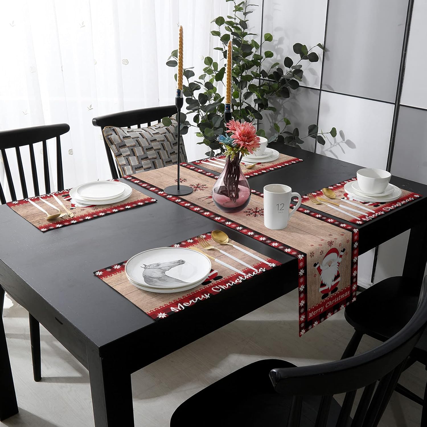 Table Runner and Placemats Set of 6 for Dining Table Kitchen Farmhouse Decor Package & Size Avaiable: 1 Pcs 13x70 inch Table Runner + Placemats Set of 6 (13" W x 19 L") 1 Pcs 13x90 inch Table Runner + Placemats Set of 6 (13" W x 19 L") 1 Pcs 16x72 inch Table Runner + Placemats Set of 6 (13"" W x 19 L"") Standard size placemats kits fit kitchen table,dining table,family daily use,business office,BBQ,picnic,hotel,more tables. Material: Premium heavy duty vinyl cotton woven linen fabric exquisite placemats with table runners.Eco-friendly,Durable,Non-slip,Non-stain,Non-fading Design: Our Table Mat set have a fun,simple and elegant print design,like farmhouse,flage,elegant,floral,vintage,rustic,beach,landscape,animal,countryyard,modern Good Protection and Good Decoration Placemats for dining table decorate your table in a low cost way,add a touch of style,perfect for holiday,Christmas,Wedding,Baby Shower,Birthday,Thanksgiving Day,Gathering,housewarming,Indoor&Outdoor activities. Protect your table from scratches and stains.Oil-proof,Wrinkle-Resistant,Shrink-Proof,Heat Resistant,Stain Proof