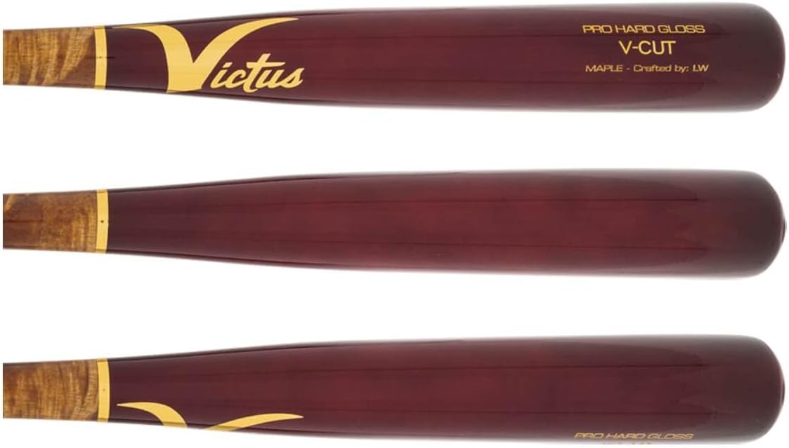 Victus V-Cut Hard Maple Wood Baseball Bat: VMPC-FT/DC Get this slick-looking V-Cut Maple Wood Baseball bat! Bat Benefits V-Cuts are some of the most beloved wood baseball bats available. The story with these bats is that they were originally destined to be cut for a professional baseball player. However, along the production line, Victus noted a “non-structural imperfection” that kept them from being sent to a pro ballplayer. Instead of turning these bats into firewood, Victus creates this V-Cut line to sell to amateur batters who want a little taste of what a professional player might swing. These maple bats can come in any wood bat turn produced in Victus' factory. Because of that, the bats can come end-loaded or balanced in their feel. And due to the bat's feel not being guaranteed, these bats work best for players who step up to the dish ready to mash no matter what they have in their hands. This bat will come with a colorway that incorporates natural, dark cherry and a "flame tarred" look on the taper. The barrel will be bone rubbed to allow for a little bit harder hits when you connect with a baseball on the sweetspot.