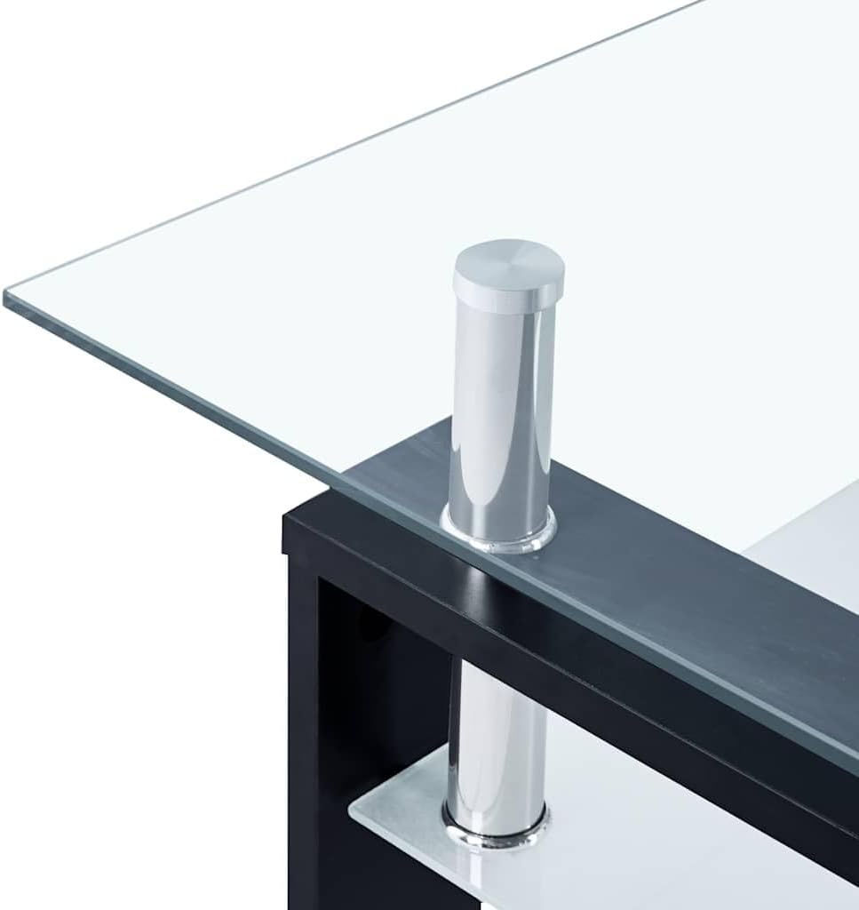 This coffee table perfectly mixes modern design with functionality, making it the ideal showpiece for your living room. The sleek black and transparent colors boost its appeal, blending well with various decor styles and providing a stylish area for drinks and decorative pieces. The modern design is a visual delight for your home, fitting various decor styles and making your living space feel more inviting. With dual-layer shelves, there’s plenty of room to store books, magazines, or decorative items, helping keep things neat and welcoming. Combining tempered glass and synthetic melamine guarantees durability, making it heat and wear resistant for everyday use. Easy maintenance is a key perk, as a damp cloth is all you need to keep it looking fresh, without harsh chemicals. Designed for indoor use, this coffee table is perfect for flats and homes, acting as a functional and tasteful piece in any living space.Features:- The modern design is a visual delight for your home, fitting various decor styles and making your living space feel more inviting.- With dual-layer shelves, there’s plenty of room to store books, magazines, or decorative items, helping keep things neat and welcoming.- Combining tempered glass and synthetic melamine guarantees durability, making it heat and wear resistant for everyday use.- Easy maintenance is a key perk, as a damp cloth is all you need to keep it looking fresh, without harsh chemicals.- Designed for indoor use, this coffee table is perfect for flats and homes, acting as a functional and tasteful piece in any living space.Color: Black- Shape: Rectangular- Material: Synthetic Tempered Glass- Indoor/Outdoor: Indoor Only- Cover Included: No- Room: Living Room- Dimensions: 21.7 x 37.4 x 15.7 in (W x L x H)- Surface Height: 2.4 in- Leg Height: 15.7 in- Weight: 32.41 lbs- Delivery Contains: 1 coffee table- Assembly Required: Yes- Recommended Number of People for Assembly: 2Specifications:- Frame Material: Metal- Dangerous Goods Regulations: not applicable- Included Components: Assembly Instruction- Is Fragile?: Yes- Manufacturer: vidaXL- Model Name: vidaXL Melamine Coffee Table in Black and Transparent Tempered Glass- Model Number: 330303- Number of Boxes: 1- Number of Items: 1- Product Uses Batteries?: No- Frame Type: Finished- Search Related Keywords: Coffee Table,Glass Coffee Table,End Table,Living Room Table,Modern Coffee Table,Tempered Glass Table,Sofa Table,Accent Table,Furniture,Indoor Tables,Stylish Table,Contemporary Coffee Table,Rectangular Coffee Table- Base Type: Legs- Top Material: Glass