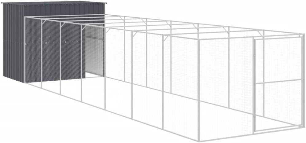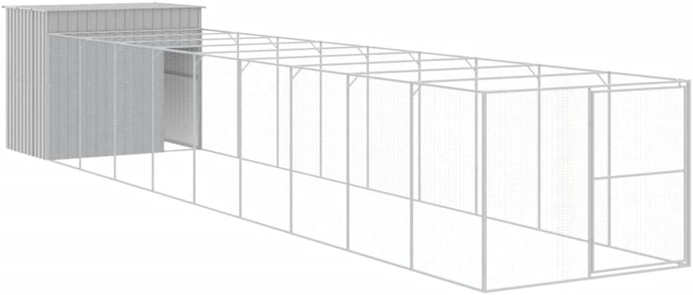 Provide safety and comfort for your furry friends with this dog house with roof. Versatile use: The versatile doghouse features multiple uses: playing, exercising, training, or simply keeping your puppy safe. It will be the perfect play paradise for your furry friends!Durable construction: Thanks to the sturdy and heavy-duty galvanised steel construction, the dog kennel is durable and built to last.Practical roof: The roof of the dog cage protects the puppy from sun, rain, snow, and other weather conditions.Convenient access: There is an entrance to the animal house, which makes it easy to get in and out.Colour: Light greyMaterial: Galvanised steelOuter dimensions: 214 x 153 x 181 cm (L x W x H)Inner dimensions: 206 x 143 x 178 cm (L x W x H)Entrance area size: 47 x 120 cm (L x H)Assembly required: Yes