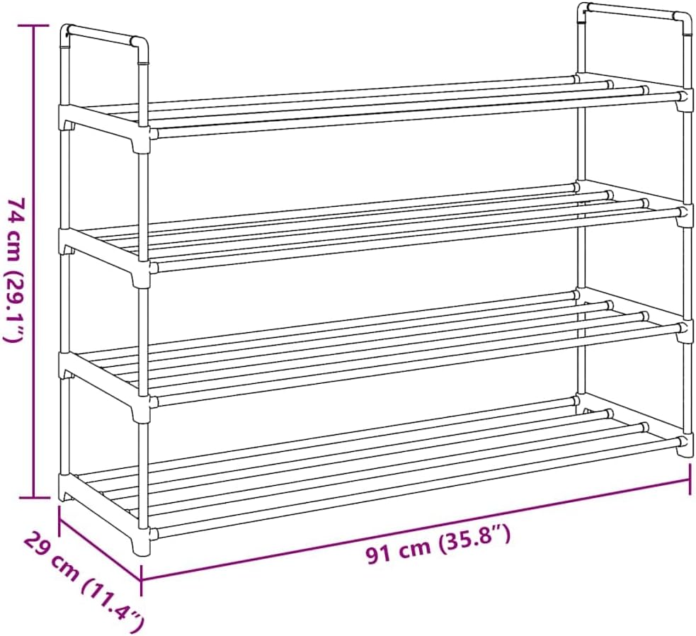 | Product Name | vidaXL Black Shoe Rack - Lightweight Tubular Metal Frame - Competent 4-Shelf Shoe Storage Organizer |