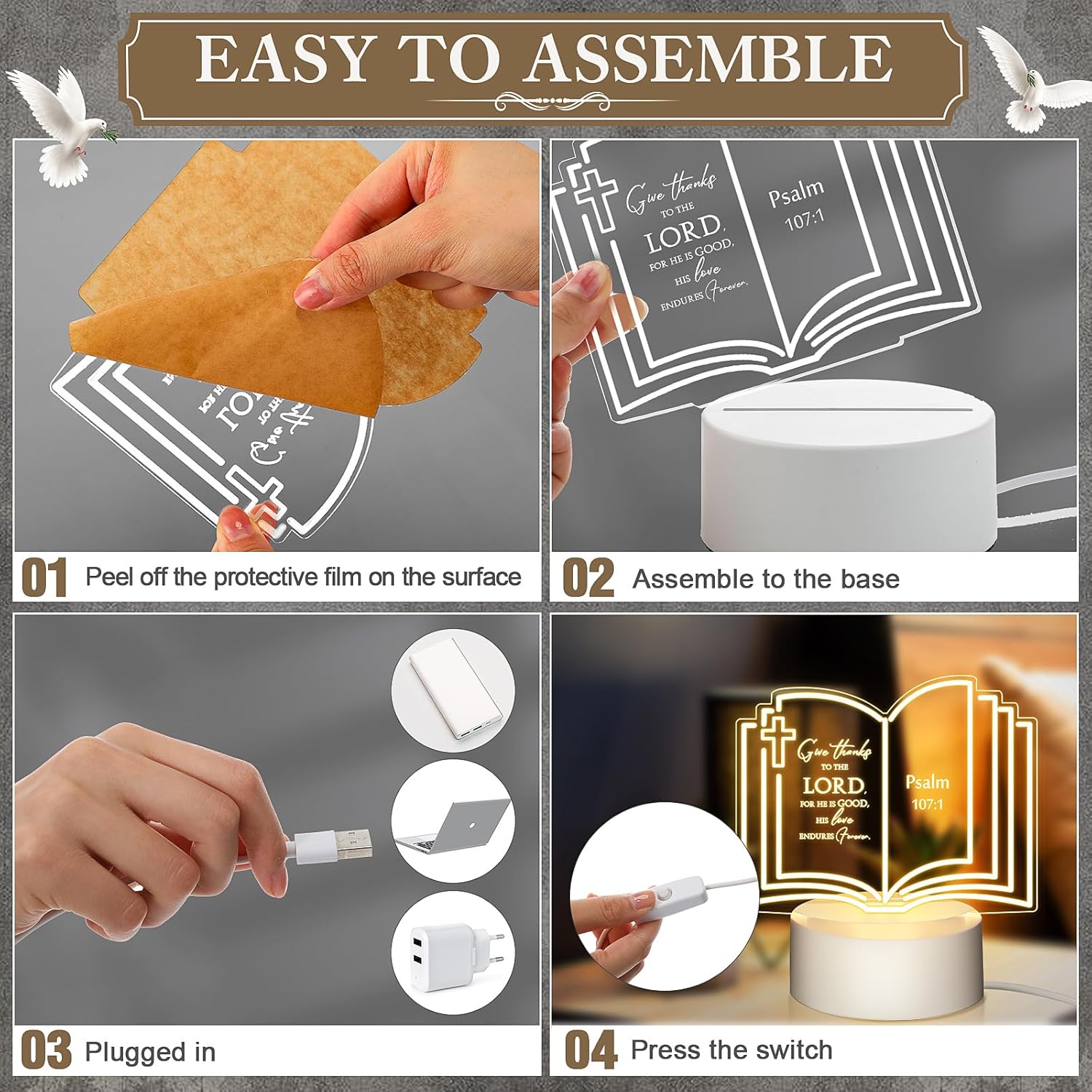 | Included Components | 10 x Christian inspirational gift with USB and base |