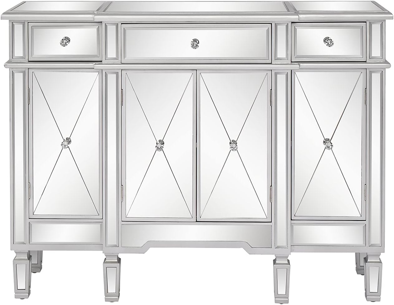 VINGLI Mirrored Console Table, Modern Buffet Cabinet/Sideboard/TV Stand with 3 Drawers and 4 Doors (Silver, 48" L x 14" W x 36" H)