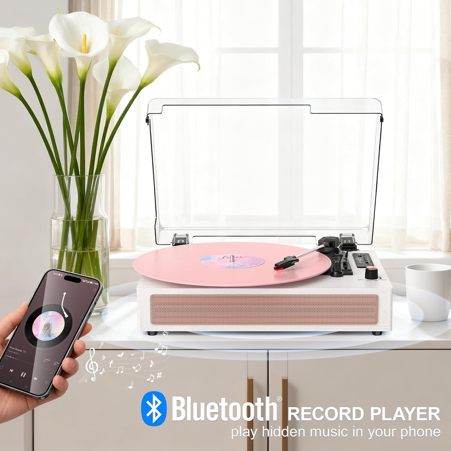 | BuiltIn Media | 1 pink record player, Instruction Manual, Power adapter |