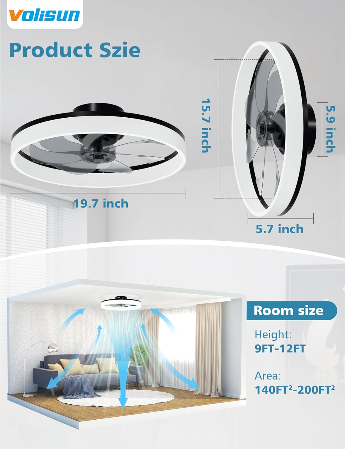 | Special Features | 6 wind speed fan with ceiling light, Dimmable ceiling fans with lights flush mount, fandelier with memory function, low profile ceiling fans with light and remote, quiet ceiling fans for bedroom |