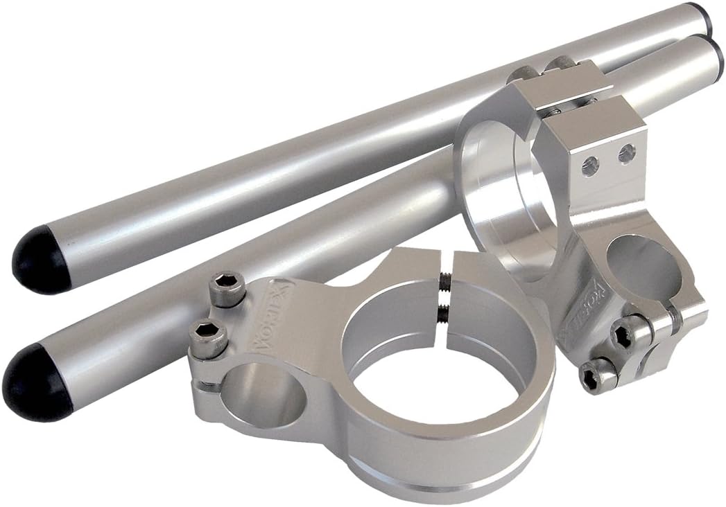 Vortex clip-ons are an economical replacement handlebar with amazing strength. They are machined from solid billet with a removable handlebar. In the event of a crash, you simply replace the handlebar tube instead of the entire clip-on. Vortex handlebars come in 0 and 7 degree angles. Kit includes both collars, 2 handlebar tubes with plastic ends and high tensile strength fasteners. Note: Vortex bar end will also work with Vortex clip-on tubes.