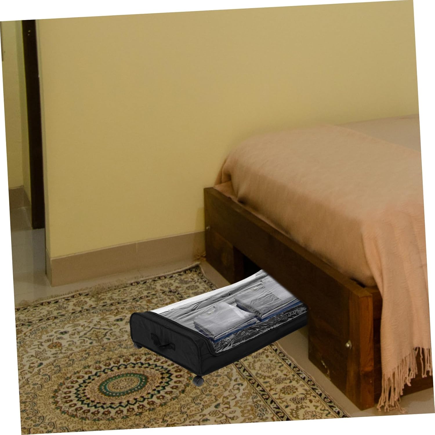 Package Include 1 x under bed storage cart Features -Material:Iron, plastic, fabric storage under bed organizer -Color:Black under bed storage containers -Size:80.00X44.00X13.00cm/31.44X17.29X5.11in under bed drawers on wheels - The under bed storage cart is easy to access, simply slide them out under your bed when you need something under bed organizers and storage. - Under bed organizers is easy to move around due to the wheel design, a great for small bedrooms or apartments under bed clothes storage. - use the under-bed space, this under bed storage cart makes the room more tidy and spacious under bed drawers. - Adopting sturdy materials, the under bed clothes drawer will not deform or break easily, , can be used for a long time under bed storage drawers. - Such under bed clothes drawer can store clothes, shoes, , books and other items, meeting different storage needs under bed drawers for clothes.Goods Informationstorage bin with wheels Still looking for a under bed storage cart for home sundries storage and organization? Our under bed storage container will be your unmissable choice.storage for small bedrooms Adopting sturdy materials, this under bed cart has excellent durability and practicality, which will meet your needs very well