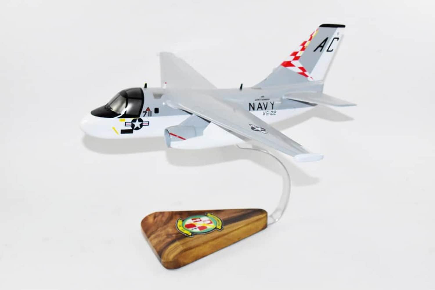 A carefully crafted S-3b Viking model with the VS-22 Checkmates – a perfect display to capture your time with the legendary squadron! Each model is solid wood and hand painted to provide a piece of exceptional quality. Length – 13.5 inches Wingspan – 18 inches Made from Mahogany US Veteran Owned Business The product is not intended to be used by children 12 years and younger.