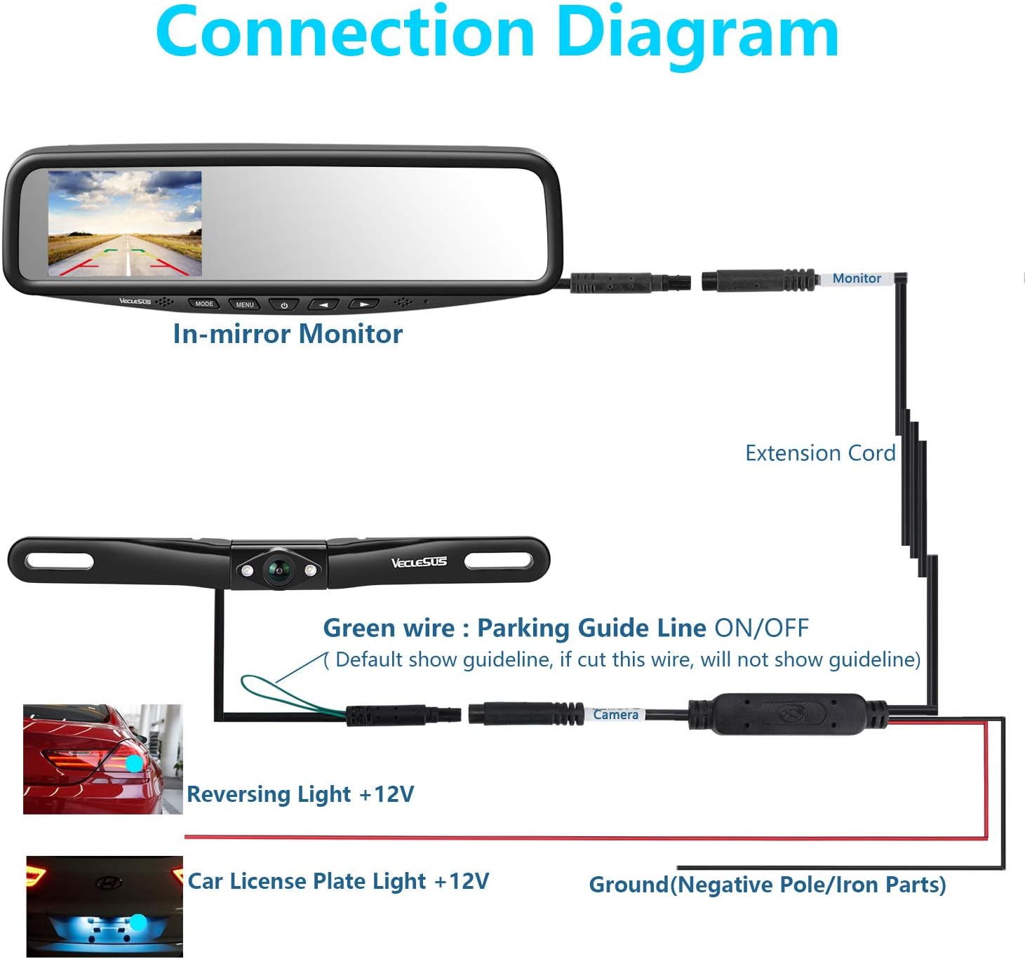 VECLESUS VT1 1080P Wired Car Backup Camera Kit, Easy to Install for Continuous or Reversing Viewing, 4.3" in-Mirror Clip-on Monitor with HD Backup Camera for Cars, Pickups, SUVs, Vans, Sedans, Trucks and One more VC1 Backup Camera