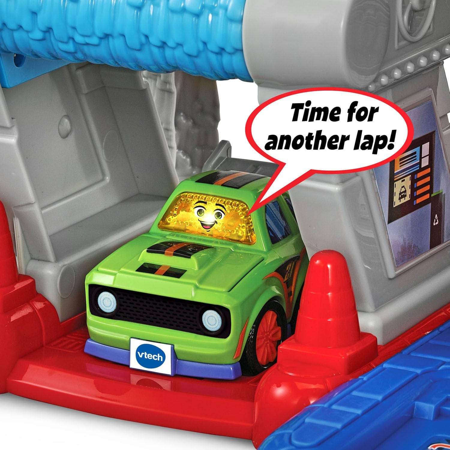 Rev up first words and motor skills with the talking Race Car and track set that drive development and imagination! Zoom down the ramp and roll into the car wash, convenience store and gas station to hear phrases about feelings and racing as kids drive the cars over six interactive SmartPoint areas. Explore movable pieces to fuel imagination and strengthen fine motor skills. Open and close the Race Car hood, raise the repair lift, press the gas pump, spin the car wash and more. Start your engines and get ready to roll! Ramp up the fun of speedy track play with one electronic Race Car and two non-electronic mini cars. Collect more Go! Go! Smart Wheels SmartPoint cars and track sets to explore unique responses (sold separately). Intended for ages 1.5+ years. Requires 2 AAA batteries. Batteries included for demo purposes only. New batteries recommended for regular use.