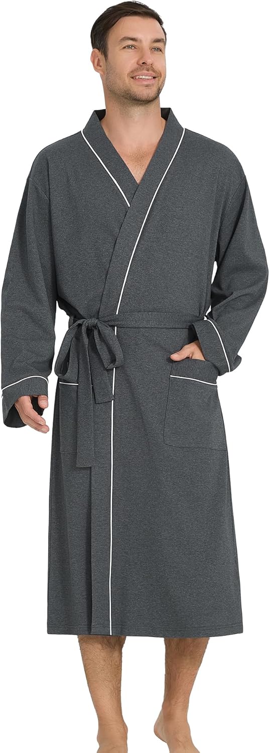 Brand:VULCANODONMaterial:50% organic cotton, 50% cottonThis organic cotton robe for men is gentle on sensitive skin, breathable, and keeps you fresh all day.Color:Black ,Dark Grey,Navy,Dark GreenPackage Information 1 * Mens RobeSuitable Season: spring,summer,autumn,winter Featuring a classic kimono collar that sits flat for enhanced comfort, two deep front pockets to securely hold your essentials, and an adjustable inner tie belt for a personalized fit.Size ChartS/M,L/XL,2XL/3XL