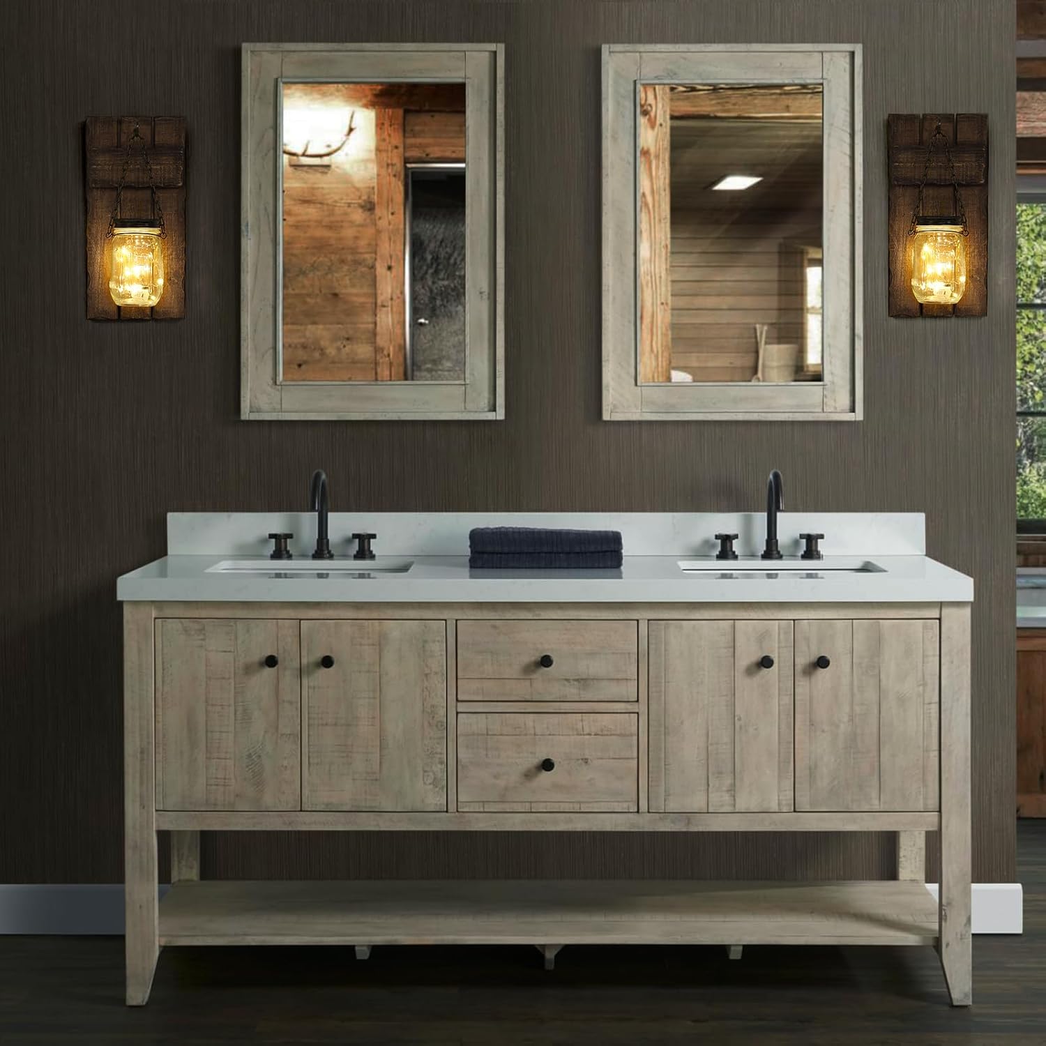 Wall Sconces Mason Jar Lights Suitable for Modern Rustic Home Decor Made of premium wood, which is strong and durable and handmade details, adding unique charm to your home decor. These mason jar sconces are the perfect combination of modern and farmhouse style, adding a touch of shabby chic to your home decor. Immerse your space in a warm, romantic glow. The size of our wall candle sconce is 12.6 x 6.2 x 0.8 inch. Hang this decorative wood candle sconces wall decor to add elegant warmth to any room. Beautiful decoration for walls in living room, kitchen, bedroom, hallway, entrance, fireplace, wedding, party or anywhere in your home. It can be a Wall Sconce Candle Holder or a Mason Jar Sconces. You can mix and match them as you like. Specifications: Material: Solid Wood Color: as the pictures shown Package Includes: Mason Jars x 2 Wooden Shelves x 2 Fairy String Lights x 2 Screws x 4 Why Choose Us? Bringing a calm and simple atmosphere to your home. Stable construction and strong wood let it have a long service life for you. Easy to assemble and wide application. Modern farmhouse style combines antique and rustic decor with modern elements for a unique and stylish look. It’s a comforting and welcoming style. So many love it because the farmhouse style is a bit lighter, brighter and more neutral, so your space looks more substantial and inviting. You can give it to a friend or neighbor who is renovating their house and they will be pleasantly surprised. Of course, this is also the best choice for your own bedroom decoration.
