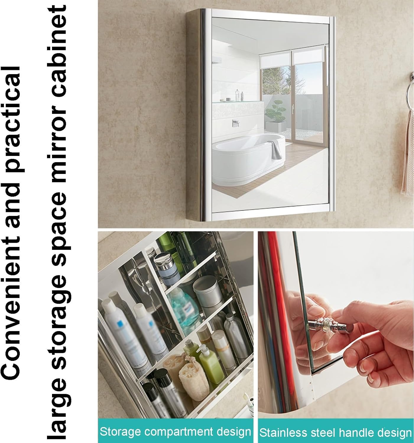 Designed with minimalist style and clean lines, this wall mounted cabinet adds a modern touch to your home decor.Multi-space storage makes your bathroom less cluttered and visually tidy.Product Name: Square Wall Mounted Bathroom Mirror CabinetStyle: Simple and beautifulShape: squareSize: 55x70x13 centimetre(21.7x27.6x5.1")Product list: bathroom mirror cabinet x1, installation accessories (other items in the picture are not included)Attention Tips:1.The products are hand-measured, there may be 1-3centimetre error, please understand.2.Due to the resolution, monitor factors, there may be a slight color difference, please understand.