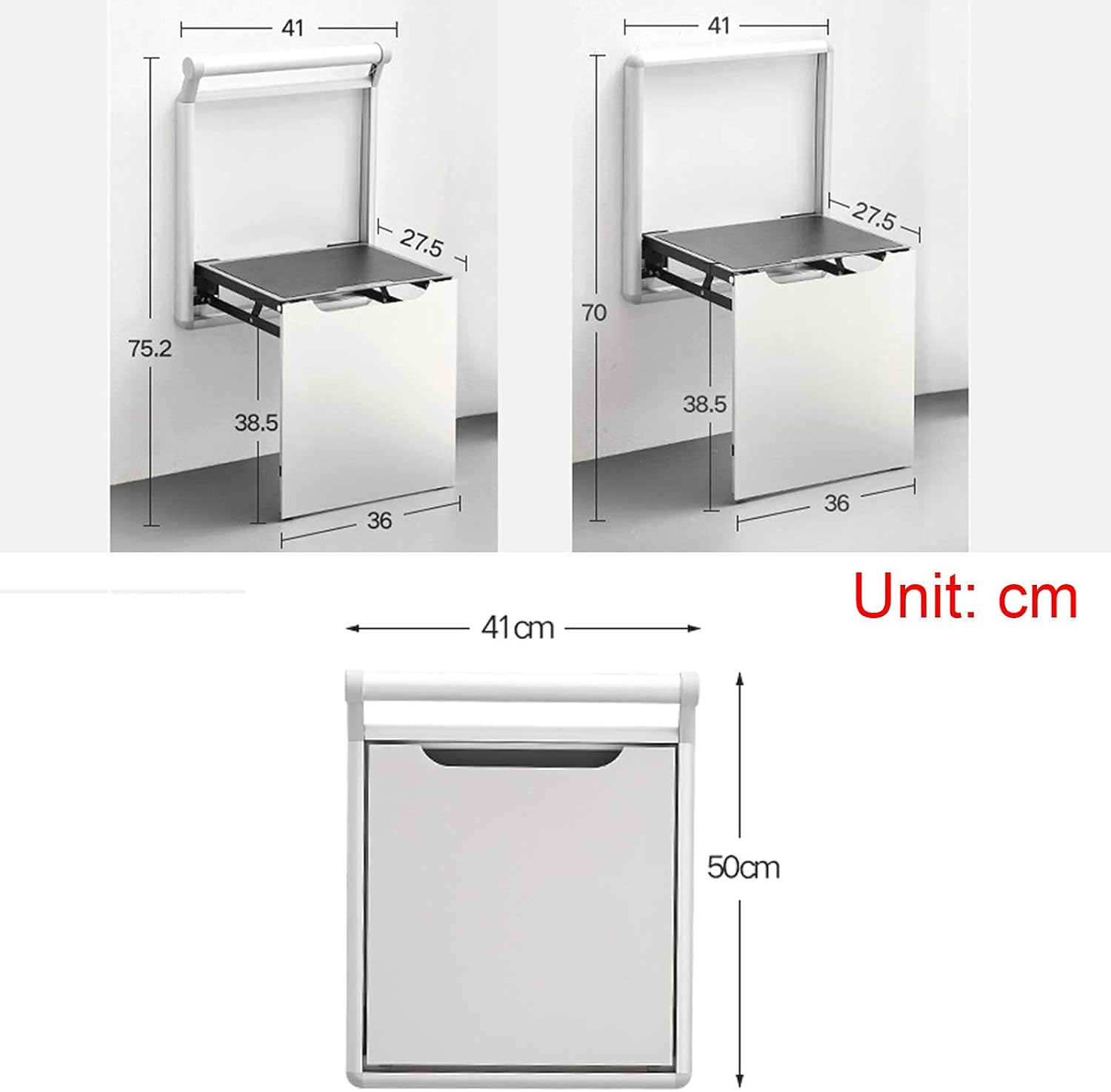 Features: Practical and :Can be used as a shoe stool, bath stool, and leisure chair, which is very suitable for family. :The wall mounted shoe stool is buffer design,flexible, and save effort,space saving. Spave Saving: Hidden behind door, not occupying floor space and wall-mounted ultra-thin design; Stylish and elegant design,suitable for entry, corridor, entrway, hallway, aisle, living room, bathroom, balcony and other spaces. Environmentally friendly aluminum alloy material, sturdy iron hardware, load bearing capacity up to 200KG Specification Name: Folding Shoe Stool Material: aluminum alloy Bearing weight: 200kg Installation : punch Packing list 1x folding shoe changing stool Mounting Accessories Note 1. We recommend you fully evaluate the thickness and load-bearing capacity of your wall before purchasing or installing it. 2. Please wipe it up with mild soap and warm water after use, Do not use abrasive cleaners or solvents on it.