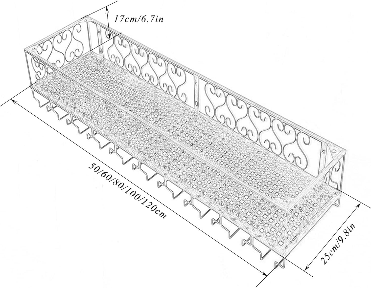 Wine Rack Wall Mounted Our wine glass rack is perfect for both home and commercial use. You can apply it to your own house, bar, hotel, and commercial cellar for an excellent wine-drinking time with your family and friends. Our Advantage: Extensive Load Capacity Universal Goblet Holder Easy to Install Wide Application Specification: Material: Iron Color: Bronze,White,Black Size: 50x25cm,60x25cm,80x25cm,100x25cm,120x25cm Package Includes: ◆ 1 x Wine Display Storage Rack ◆ 1 x Mounting accessories Matters needing attention: Due to the difference of camera lighting and different monitors, the actual color may be slightly different from the picture. Please refer to the actual color. The size is manually measured, and there may be errors depending on the measurement method. See more