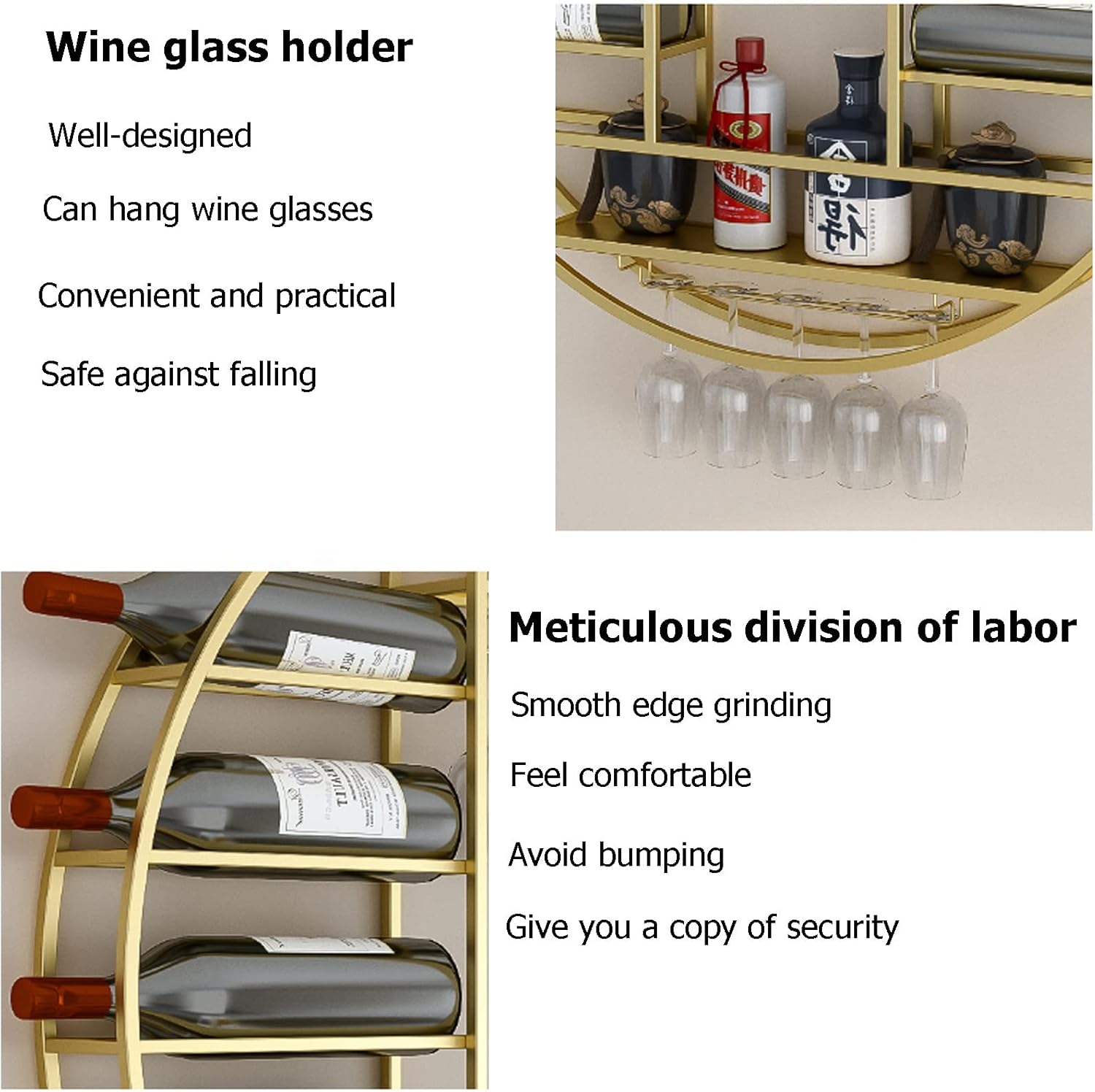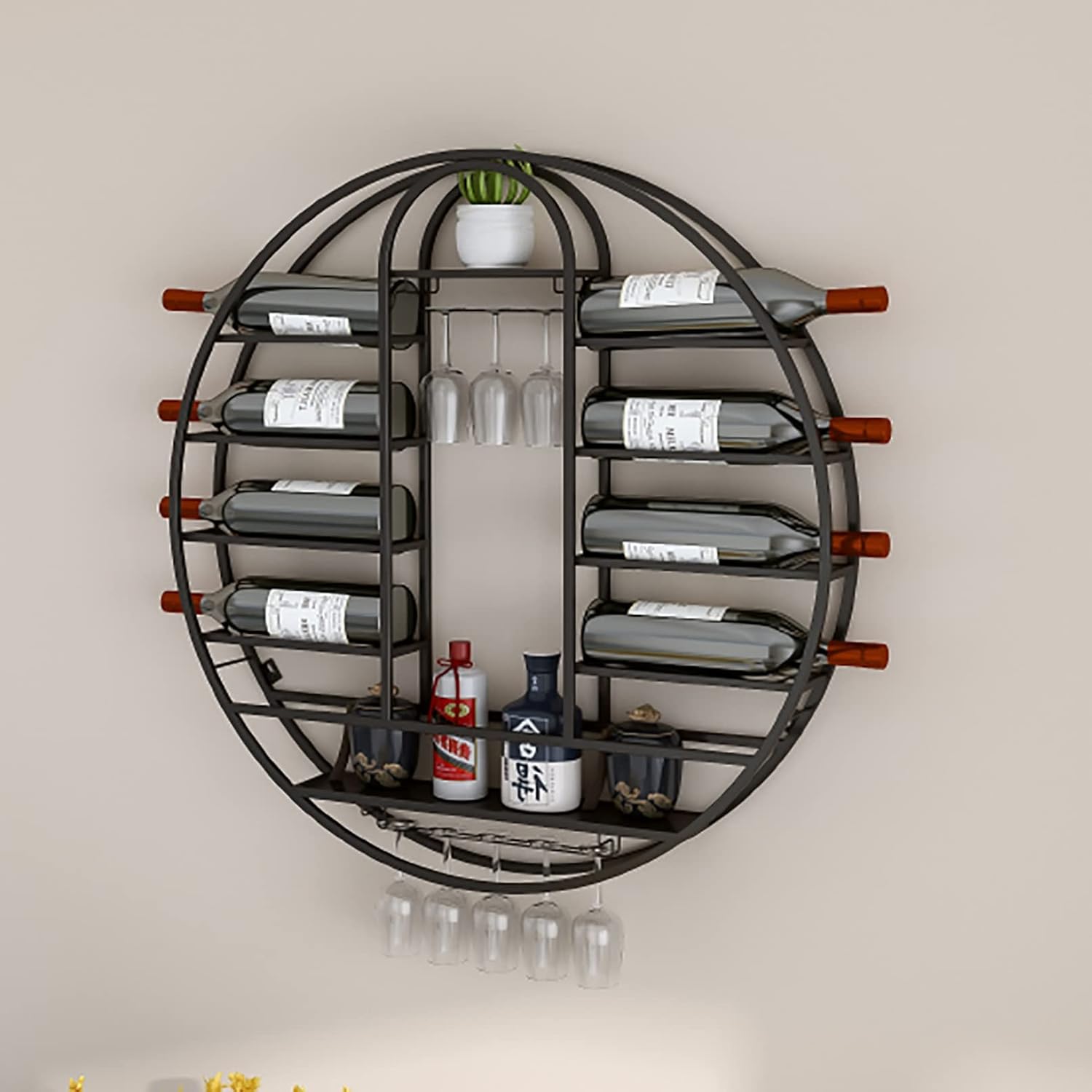 Material: The wall-mounted wine glass holder is made of forged iron, with strong bearing capacity, stable and durable structure, not easy to deform after high temperature baking, rust-proof and easy to clean. The wall shelf/wine rack has a long lifespan.