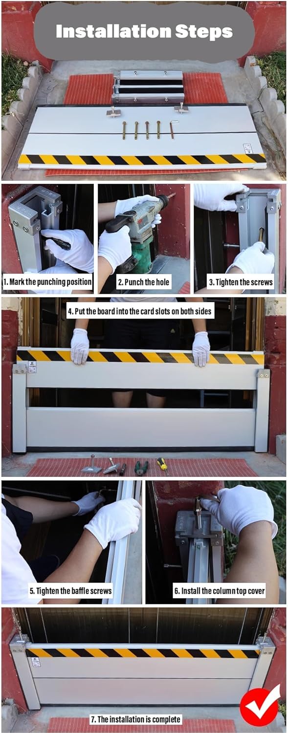 What is Flood BarrierA flood barrier is a control system and also a specific type of floodgate, designed to prevent water from flooding the protected area behind the barrier. A surge barrier is almost always part of a larger flood protection system consisting of flood walls, levees (also known as dikes), and other constructions and natural geographical features.Flood control system is fully capable of helping you design your flood protection door & barrier plan from beginning to end and ensure you are protected when the need arises.The flood barrier design varies from a simple modular 'stop-log' water barrier to automatic barriers that operate only when required.Flood barrier may also refer to barriers placed around or at individual buildings to keep floodwaters from entering that building. Specifications:Material: Aluminum AlloyColor: Natural AnodizedPanel thickness: 40 mm/1.6inDimensions: Customized SizeApplication: Flood ControlTensile strength: 160MPa aboveYield strength: 110MPa aboveAdvantage: Flood protection, strong, safe,Working Principle: Down pressure and side pressure lockingApplication: Household, garage, subway entrance, flood control Features:Stackable collectionQuick assembly and disassemblyPress down / side press locking deviceExcellent sealing and waterproof performanceEasy to install and dismantle and convenient to store.Product use: When the flood season comes, it should be used for flood control and flood fighting to prevent property damage caused by flood Package Contents:1 x Flood Barrier Warm Note: 1. Please kindly allow 1-2cm discrepancy. 1cm=10mm=0.39in.2. Slight measurement error may exist due to manual measurement being used.3. Pictures are taken by pro photographer, please understand the differences caused by lighting effects and monitor'