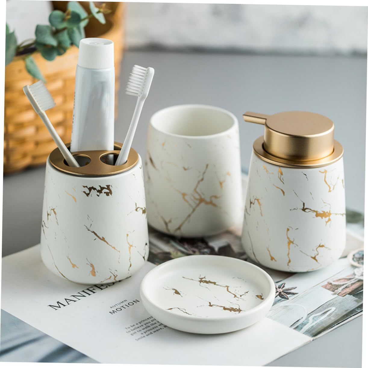 Package Include 2 x cups 1 x soap tray 1 x Lotion bottle Characteristics - Material: ceramic Washing Cup. - Size: 11.40X11.40X2.00cm/4.48X4.48X0.79in Soap Tray. - Small size and portable, convenient to carry and store. Simple and classic appearance Toothbrush Holder. - This set includes two cups, one lotion bottle and a soap tray, convenient to use Soap Dish. - Considerate make sure toothbrush and toothpaste are contained clean and neat Washing Cup Kit. - This set of wash cup is wonderful, elegant bathroom accessories organizer with great Toothbrush Box. - Fine workmanship, smooth polishing, multi-purpose, can be used as a wash cup Toilet Washing Container.Goods DescriptionToothbrush Holder This item is a set of bathroom washing cup, which is made of for use.Toothpaste Cup Chic polishing and smooth surface.Soap Dish Fine workmanship and beautiful appearance, can ensure its popularity among women and men