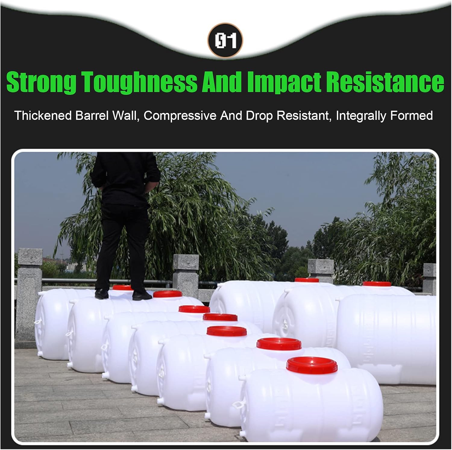 Please note that since the product is new, it may have a plastic smell when you receive it. The smell will disappear after cleaning and drying. If you have particularly high size requirements, please inquire about the dimensions before placing an order. [Basic information]Product name: Food-grade plastic water storage containerProduct material: PlasticProduct style: Horizontal BarrelProduct color: WhiteModel, Size, Capacity, Weight:【400 Model:74cm*33cm*40cm,160 Liter,5.5KG】Portable water carrier is movable, ideal for any boat, car, caravan. Perfect for camping, hiking, climbing, emergencies, sports, picnic, travel, outdoor activities.