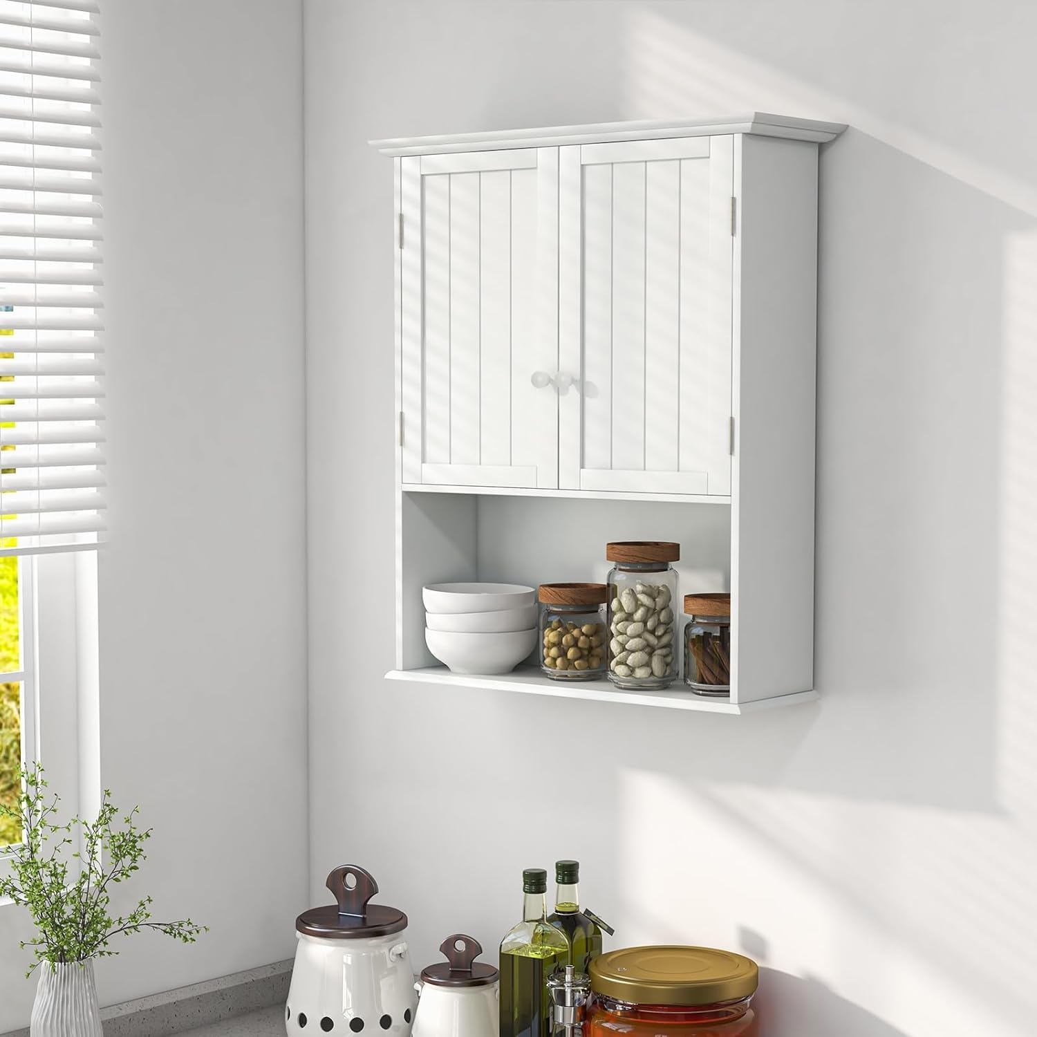 Product DescriptionWaterjoy Bathroom Cabinet Wall Mounted for Home UseMade of high-quality engineered wood, sturdy and stable;Adjustable for different heights as needed;Reduces clutter and creates extra storage space;The top weight limit is 11lbs. Other shelves' weight limited is 25lbs.SpecificationsColor: White, Black, GreyMaterial: MDF, MetalOverall dimension: 8"D x 23.5"W x 28"HWeight capacity of each level:11 lbs.Net weight:22 lbs