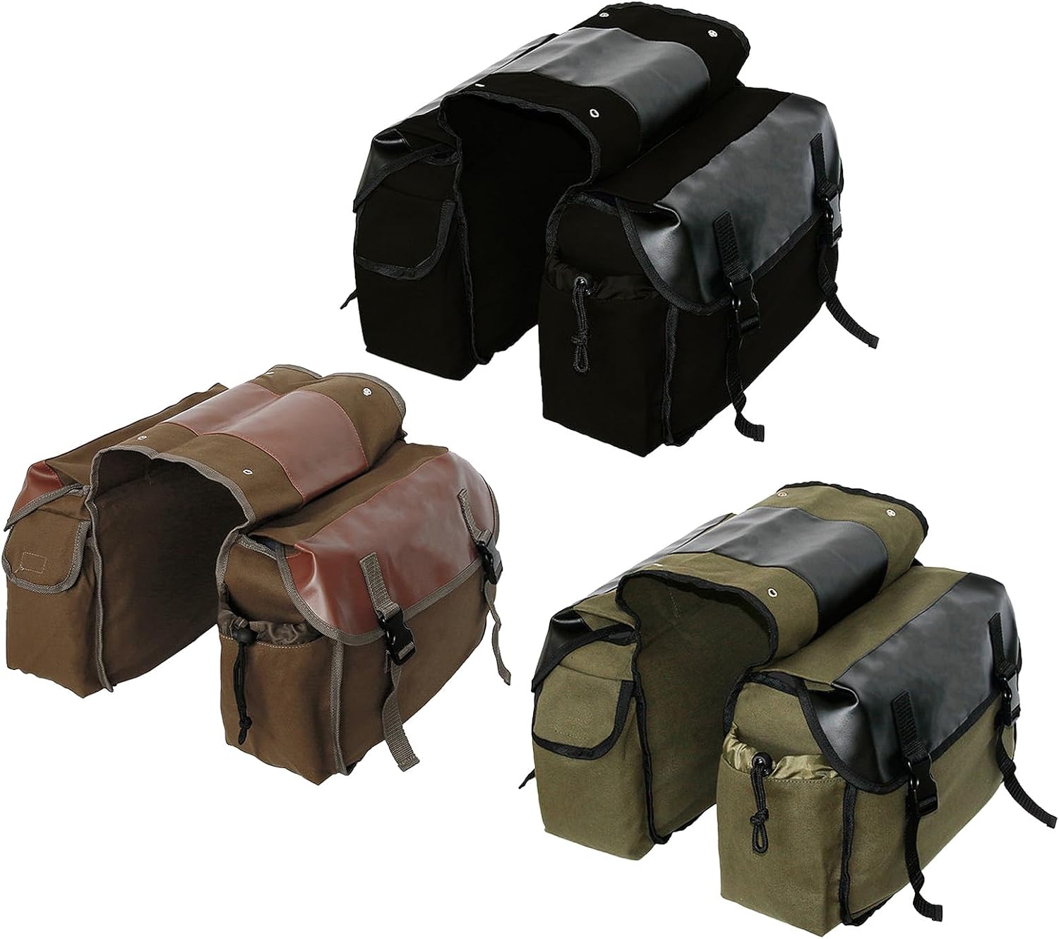 Waterproof 40L Bicycles Pannier Bag for Rear Rack, Bicycles Luggage Cargo Rack Double Trunk Cycling Pannier Bag Canvas Bike BagFeatures:40L Bike Pannier Bag: This double pannier bag is water-resistant fabric, scuff and tear-resistant, so water will roll off of it, comes along with a rain-proof cover for downpours.Safe and Firm: This two-point attachment system that keeps them securely fastened to the rear of your bike, fixing on the rear support bracket to keep the pannier in place.Unique Design: The bicycles pannier rack bag is equipped with a drawstring tab-on which we-can carry and store things comfortably. Waterproof pu shield, protecting you inner item.Bike Rear Rack: The bike rear racks is easy-to install and remove, suitable for mountain bike, electric bike, folding bike, road bike, etc. not for too bride tire bikes.Package Include: 1 bicycles rear rack, 40L large capacity double rear for seat pannier bag. Our bike rear rack & pannier bag set will bring you joy-of riding.Specifications:Material: CanvasColor: Khaki/Black/ArmyGreenPackage Weight: approx.600gSize: approx.40x27x15cm/15.75x10.62x5.90in(More Size Detail, Please See Photo.)Package Includes:1Pc Bike Rear Rack BagNote:Please allow 1-2cm error due to manual measurement. Please make sure you do not mind before you bid.Due to the difference between different monitors, the picture may not reflect the actual color of the item. Thanks!