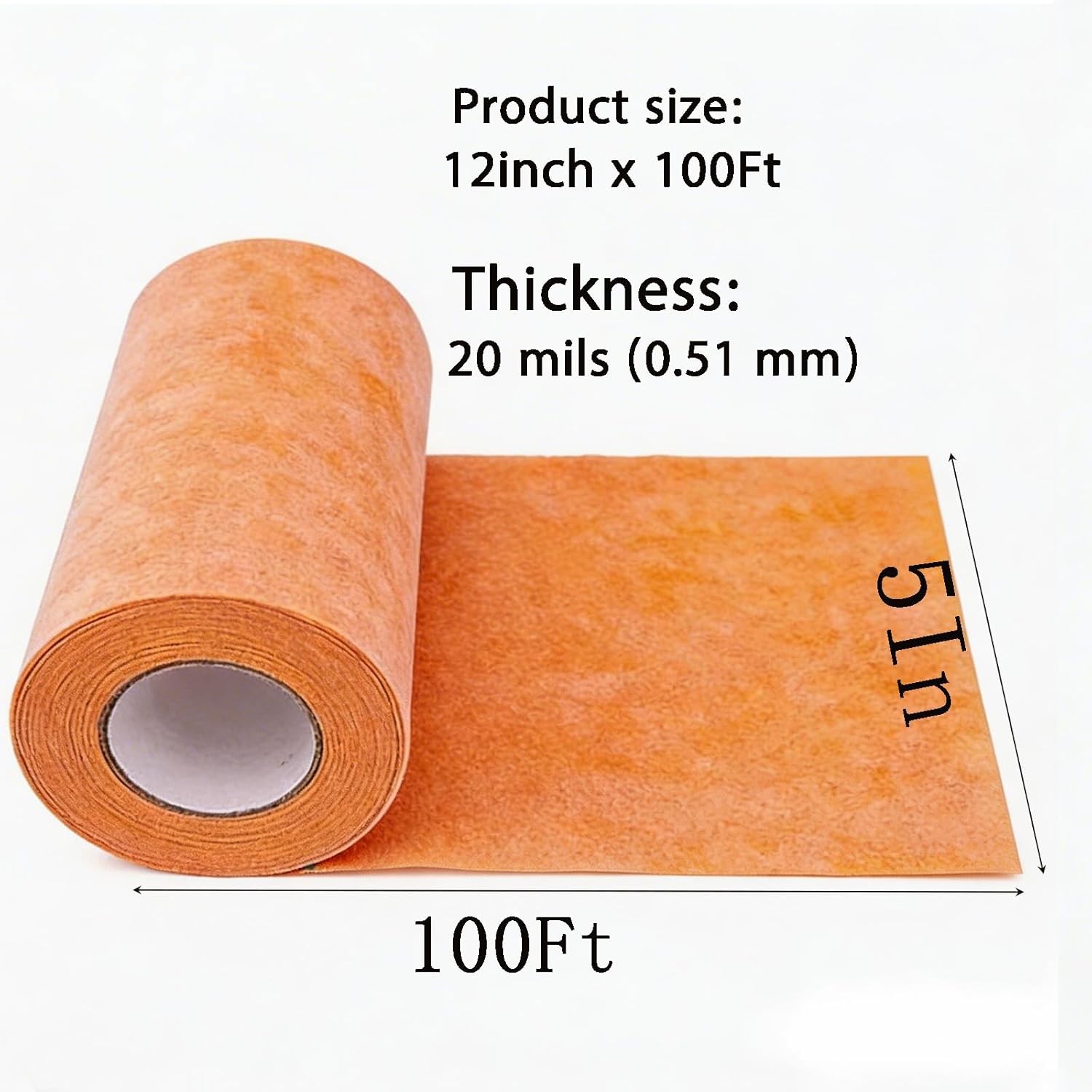 1 Rolls Waterproof Membrane for Shower Product Specifications: Thickness:20 mils(0.5mm) Size: 12inch x100 FT per roll, 1 rolls totally Color Orange Shower film is suitable for waterproofing needs of walls and floors in kitchens,bathrooms,shower rooms,saunas,and other areas,To adapt to various spatial planes and corners. The bathroom shower waterproof film roll is made of high-density polyethylene material
