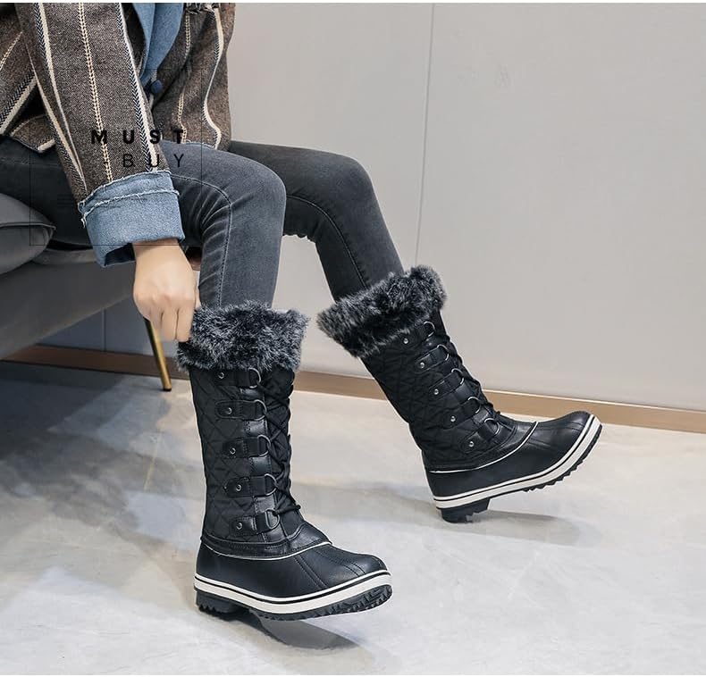 Pattern: Solid Color Inner material: plush Color: Black, Brown Black Product Category: Snow Boots Upper Height: High Top Heel height: 3 cm Tube height: 30 cm Heel Shape: Flat Heel Sole craftsmanship: Viscose shoes Leather material: artificial leather Opening depth: 28 cm Sole material: plastic Popular Element: Flanging Closure method: lacing Insole material: artificial wool Toe shape: round head Upper material: synthetic leather Wearing Style: Front Strap Applicable gender: female Applicable age group: adult Function: waterproof, balanced, lightweight, non-slip, warm, wear-resistant, support Suitable season: winter Style: commuting