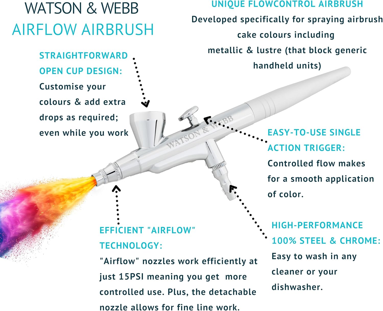 • AIRBRUSH CAKE MAKER SELECTION - Our most popular kit, specially chosen for cake decorators who need all the essential accessories. Includes 13 Matt Colours, a pro carry case, cleaning fluid, mains-powered 3-speed compressor with airflow airbrush, food-grade silicone hose, Spraytidy Cleaning Station, airbrush tools, 5 Cityscape Stencils, and a Colour Wheel. Ideal for beginners and experts alike!