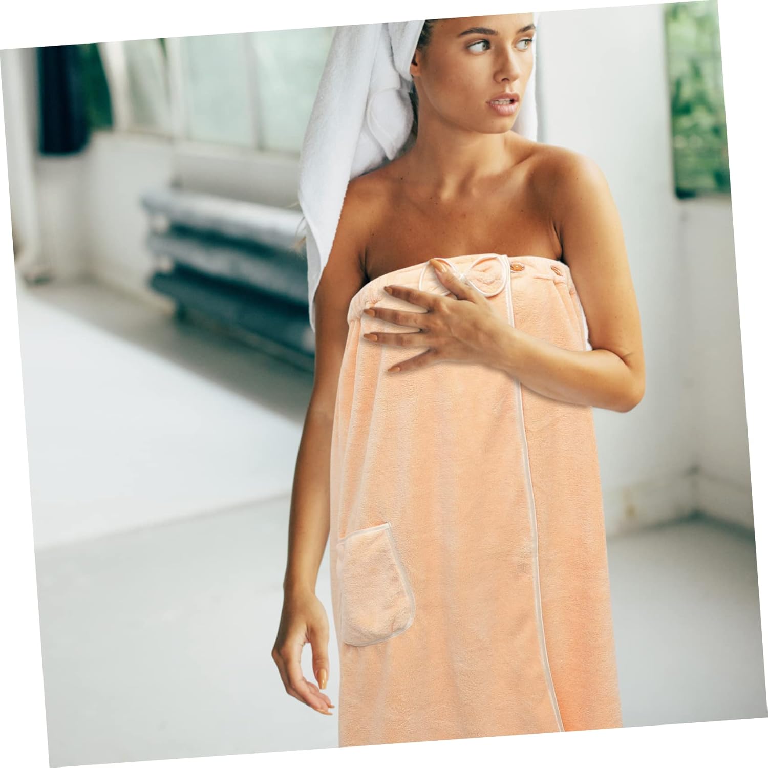 Package List 1 × women wrap towel 1 × hair towel 1× headband 1 × shower hat Features -Product Info:Bath towel set -Material: Polyester fiber towels -This set comes with a wrap towel, hair towel, headband, and shower hat, very considerate and useful wearable bath towel for women. -With high water absorption, fast drying ability, multipurpose, skin- , supple, this is a very practical towel set wearable bath towel women. -Manufactured with , with excellent durability and practicality, they are practical to use bath wrap towels for women. -They are widely used in some beauty salon, home bathing or spa use, very comfortable and towel women. - towel has an elastic design, flexible, not too tight or too loose, fit for most of the people towel for women.Goods Informationwearable towels women Are you looking for spa towel set that is both beautiful and practical? Then you miss our wrap towel, hair towel, headband, and shower hat set, which are all made of supple and skin-friendly materials.wearable towels for women They are suitable for spa, sauna, and so on, a very professional and practical beauty salon towel set for you