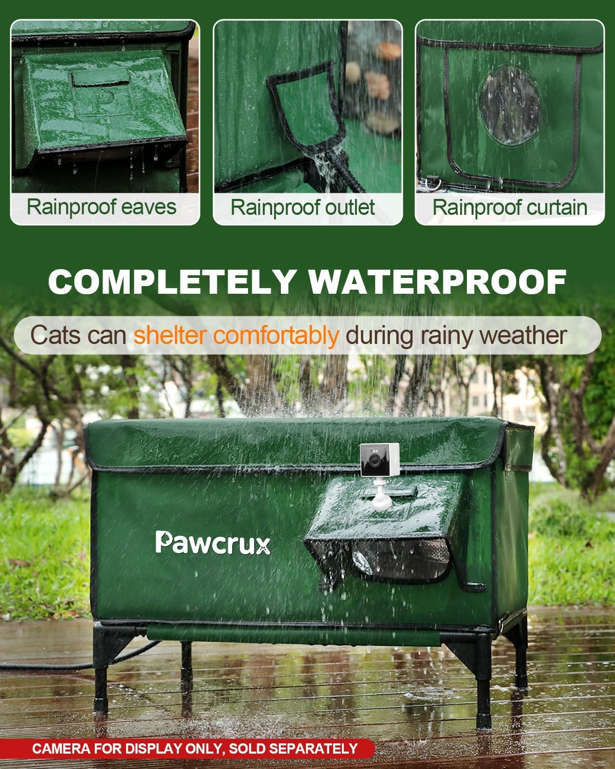 • ๐—ช๐—ถ๐—ป๐—ฑ ๐—ฎ๐—ป๐—ฑ ๐—ฅ๐—ฎ๐—ถ๐—ป ๐—ฅ๐—ฒ๐˜€๐—ถ๐˜€๐˜๐—ฎ๐—ป๐˜: The elevated, off-ground design of this heated cat bed outdoor prevents moisture buildup. Its heating pad outlet, eaves, roof, and escape door are all waterproof, built to withstand wind and rain. This fully weatherproof heated cat house ensures that your catโ€™s environment remains dry and comfortable.