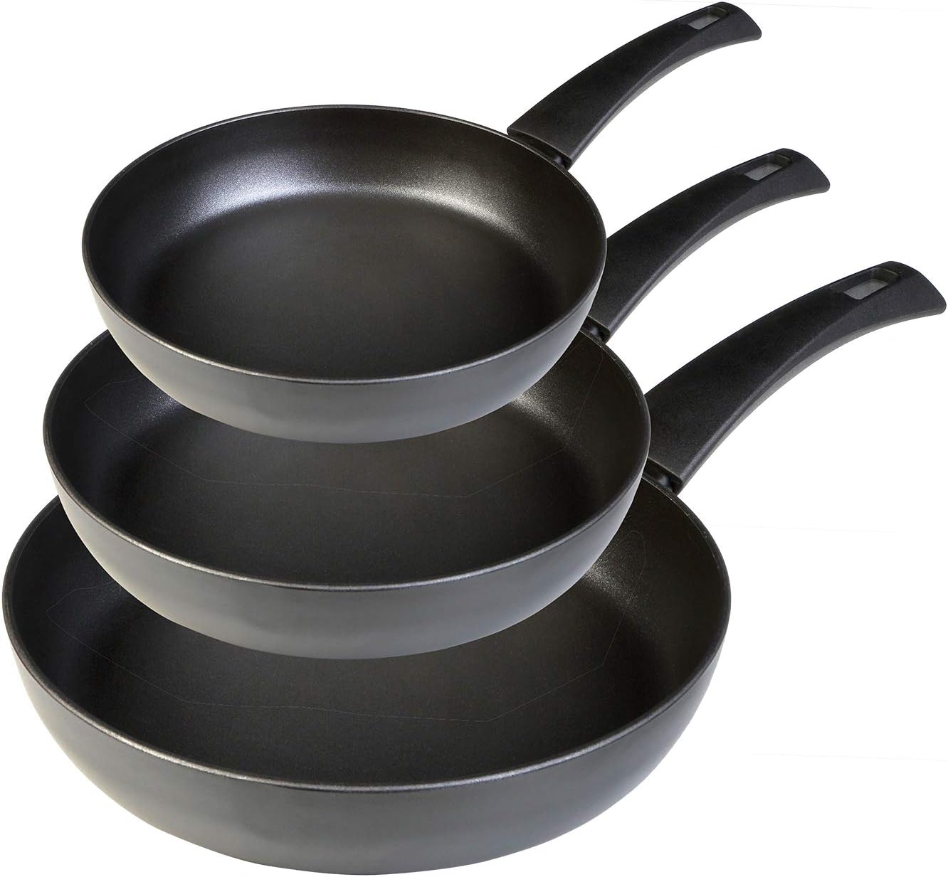 Wecook Ecogreen Set of 3 Frying Pans 18 – 20 – 24 cm Forged Aluminium, Induction, Non-Stick, Eco PFOA Free, Dishwasher Safe for All Hobs, Ceramic Hobs, Gas Our range of Ecogreen Pressed Aluminium Frying Pans offers quality and efficiency, respecting the environment. We use the best quality aluminum in the manufacture of our products, anti-PFOA free, no toxic gases, no harm to the environment and human health. The Ecogreen pans have full induction bases and welded to the base of the pan, covering 100% of the same full induction system, providing a perfect and even heat transmission across the entire surface. The pieces from the ECOGREEN range have a thickness of 3 mm, soft touch Bakelite handle, very ergonomic. Set of frying pans, Wecook Ecogreen Pressed Aluminium, Anti-Adhesive, Eco-Friendly, PFOA Free Set consisting of pans of 18 cm – 20 cm – 24 cm made of pressed aluminium that allows for a fast and even distribution of heat. High energy efficiency. 100% PFOA free eco-friendly XYLAN Plus non-stick coating. Very ergonomic soft touch Bakelite handles, suitable for gas, electric, ceramic and induction hobs. Thick finish with a thickness of 3 mm 100% full induction the induction base is welded to the pan allowing maximum heat transmission and diffusion. Dishwasher safe.