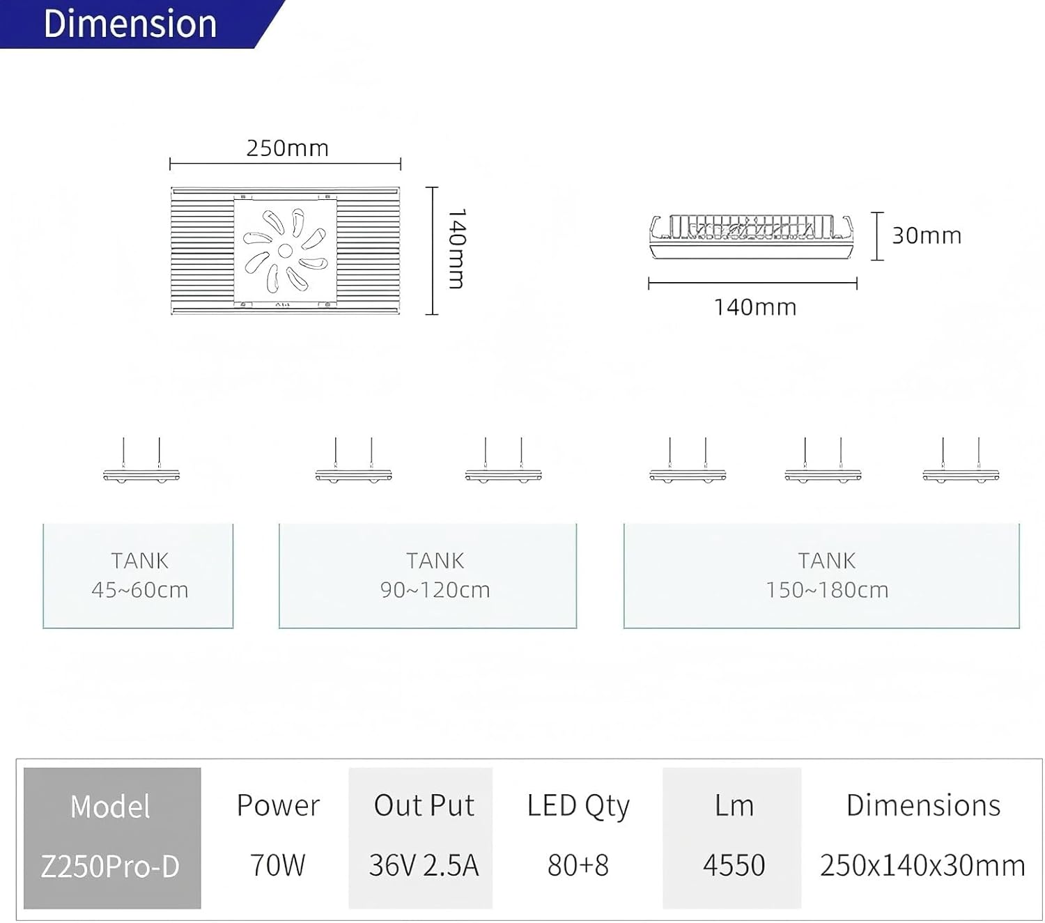 Week Aqua Z250Pro RGB UV Full Spectrum Spotlight APP Control Led Freshwater Planted Aquarium Light