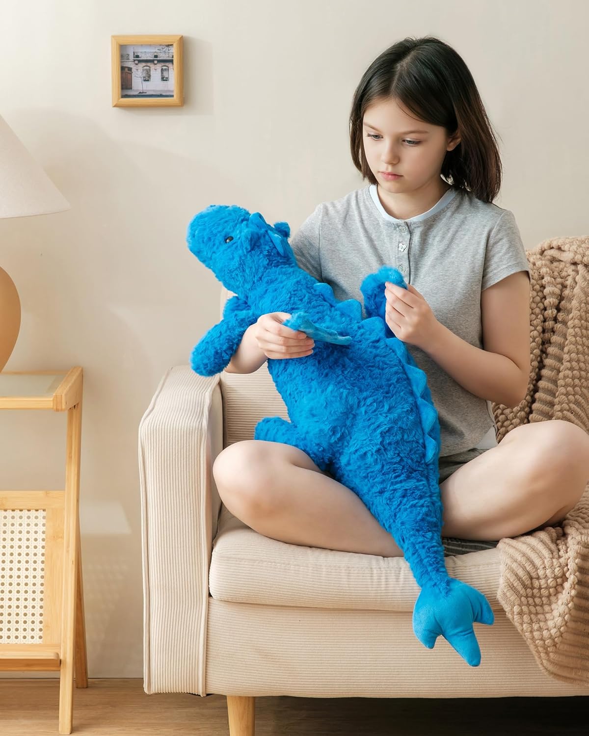 Weighted Stuffed Animal 5Lbs 35.4", Blue Soft Dragon Plush Toy, Weighted Dragon Stuffed Animal for Kids and Adults, for Comfort and Relaxation