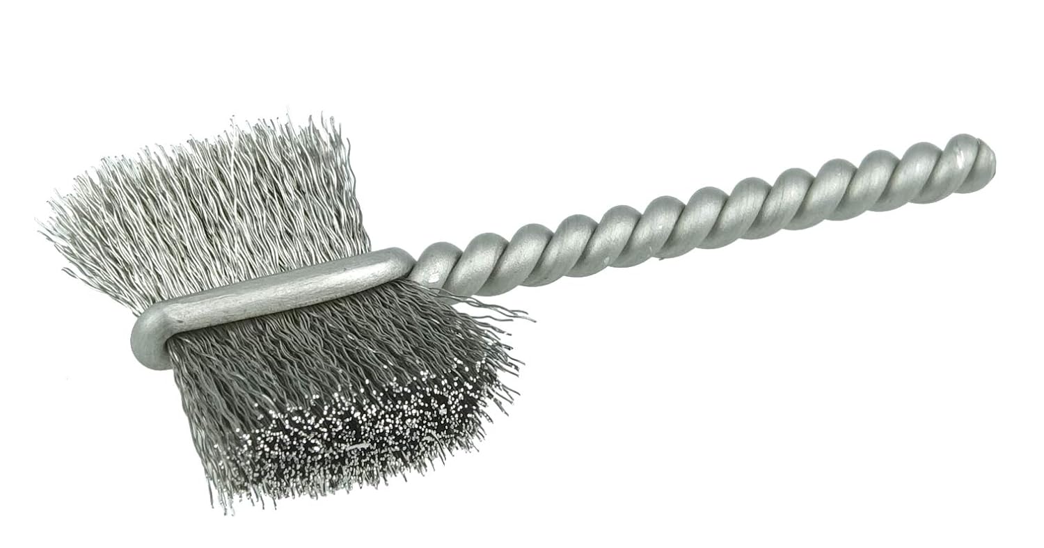 Weiler 7/8" Burrite Power Tube Brush is Ideal for cleaning and deburring internal threads on steel parts. 1/8" stem diameter for use on CNC, drills and drill presses. Features a single continuous length of stainless steel stem wire filled with a tuft of crimped wire to provide aggressive flat side action. Weiler offers a comprehensive line of power and hand tube brushes for internal cleaning and deburring applications in tubing, pipe, drilled-and-tapped holes, and machined bores and passages. Due to their twisted-in-wire construction, the use of power tube brushes is limited to low-speed power tools such as drills and drill presses and to CNC and manual machine tools in which the RPM can be precisely programmed or set. In addition, they should not be used in reverse rotation to prevent unraveling of the stem wire. Available in a wide variety of brush configurations and fill materials, Weiler can supply a tube brush for any application.