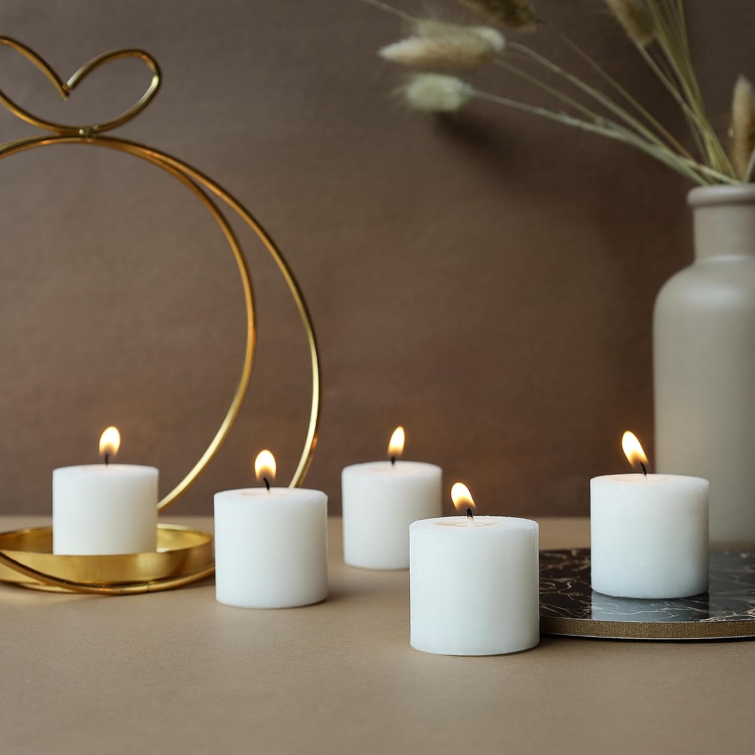Elegant Glow, Endless Elegance: Discover the allure of our Votive Candles, meticulously crafted for enchanting ambiances. Light up your world with Welburn Veda&Co Votive Candles that will beautify any room or event. From weddings to aromatherapy, these India-made treasures set the scene with clean-burning brilliance. Embrace the warmth of their light for a touch of tranquility.Our unscented white votive candles are meticulously crafted using 100% fully refined paraffin wax, ensuring a beautiful appearance and preventing any dripping or fast melting. Our votive candles are lead free with 1.7" height & 1.5" diameter that makes them a perfect choice and can be used as indoor or outdoor candles.These exquisite votive candles have gained immense popularity in the floral supply, home decor and wedding planning industry. Whether used by home decorators or event planners, these high-quality traditional votive candles always serve their purpose. They add a warm light to any occasion, creating a sense of harmony and romance.These attractive votive candles have a wide range of applications, such as party favors, emergency lighting during power outages, aromatherapy, outdoor patio ambience, and restaurant table decoration.These candles provide upto 12 hours of warm ambient light, ensuring a long-lasting and enjoyable experience. The 100% cotton wicks enhance the burning process, resulting in a smokeless flame that flickers less than other candles.The pack contains 144 white candles with a burn time of 12 hours. We take great care in wrapping them to prevent any damage during transportation.