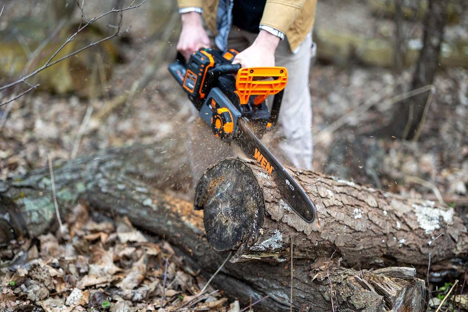 Remember when your yard work was bound by gasoline and extension cords? Leave all the hassle of the other chainsaws behind with the WEN 20V Max 14-Inch Brushless Chainsaw. The 14-inch chain runs at speeds of up to 50 feet per second, while the lightweight 10.1-pound design limits fatigue during operation. Forget the hassles, maintenance, and noise of gas-powered saws - simply install the included batteries for a quick, quiet, and easy sawing session. The auto-oiling system lubricates the guide bar and chain as you cut to elongate the life of both the chain and the saw itself. The powerful, emissions-free brushless motor starts quickly and provides better performance, a longer lifespan, quieter operation, and less maintenance than brushed alternatives. With its tool-free chain changes, onboard kickback brake, onboard battery charge gauge, and steel bucking spikes, this saw can handle it all, from the backyard to the back forty. Compatible with the entire line of WEN 20V Max Lithium-Ion batteries and chargers (4Ah or greater battery recommended for best results). And because it's a WEN product, your chainsaw comes backed by a two-year warranty, a stocked inventory of replacement parts, and a friendly customer help line. Remember when your yard was the talk of the town? Remember WEN.