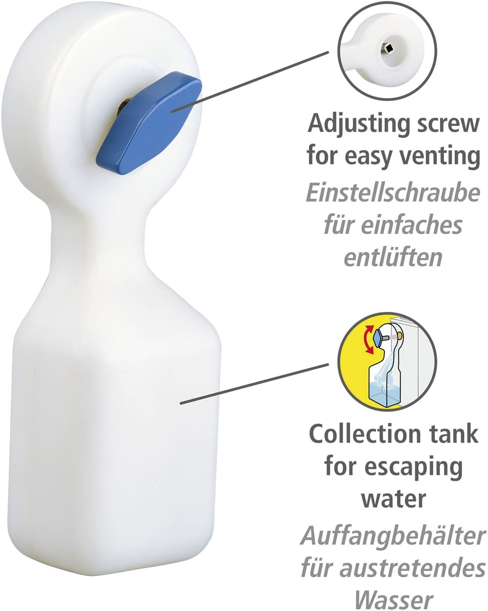 Does the heater gurgling, bubbling or not getting really warm? Often this is due to the fact that there is air in the radiator, which hinders the circulation of the heating water. The trapped air bubbles prevent the heater from developing its full power. Fortunately, this well-known problem can usually be easily fixed: with the practical radiator vent from WENKO the ventilation process can be done in no time at all. You can heat more efficiently and thus save energy costs. Quick and clean, the vent with collection container, which has a capacity of up to 120 ml, creates a remedy: carpets, walls and wallpaper remain clean, as water leaking from the radiator is immediately collected. The small but efficient household aid made of plastic (PE/ABS) measures 5 x 15.5 x 4 cm (W x H x D) and can be easily used even in tight radiator niches. The vent is suitable for all standard heaters (6 mm square key). Material: Container: Polyethylene, Screw: Plastic (ABS) Colour: container: white, screw: blue. Dimensions (W x H x D): 5 cm x 15.5 cm x 4 cm. Net weight: 35g