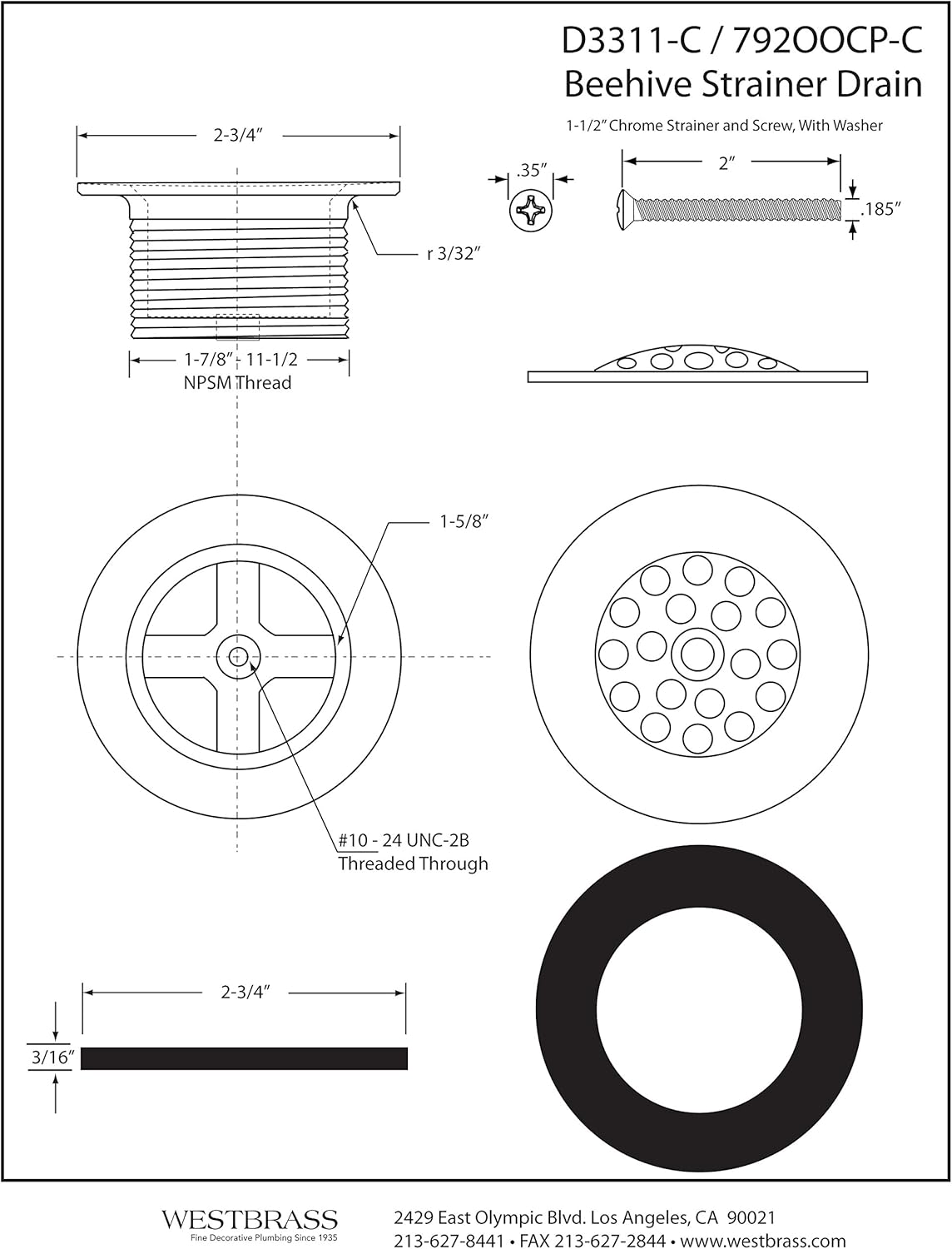 Product Description This simple to use bath drain plug from Westbrass features a beehive drain strainer mechanism for debris and hair removal. This style is ideal for waste and overflow drainage using a trip lever style drain closure. Available in a variety of stylish finishes, this item is sure to complement your existing fixtures. Be sure to check out our other model styles and VISIT OUR WESTBRASS STOREFRONT for more Kitchen and Bath items to stylize your home with convenient functionality and beauty. From the Manufacturer Westbrass was founded in 1935 by two brothers, to serve the needs of all plumbing wholesalers on the West Coast. The product lines at the time included items such as faucets, valves, malleable fittings, etc. After becoming the premier distributor of plumbing products, the company was bought in 1985 by Max Homami. Seeing a boom in the Home Improvement Industry, Mr. Homami had a vision to make Westbrass the leader in Kitchen & Bath Accessories.The company currently manufactures its own products made of the highest quality materials. In order to ensure the excellence in the industry, these products are made to pass the highly stringent requirements of NSF, IAPMO, ADA and many other regulations. The Los Angeles-based company now sells a wide range of Plumbing Specialty Products, Bath Waste & Overflows, as well as Decorative Kitchen & Bath Accessories worldwide. Westbrass holds several patented items including the Deep Soak Overflow designed for extra-deep soaking in most bathing-wells, the Closing Linear overflow and several other intellectual properties. The customer base includes kitchen & bath showrooms, plumbing wholesalers and supply houses, OEM and ODM companies, as well as several national home centers.