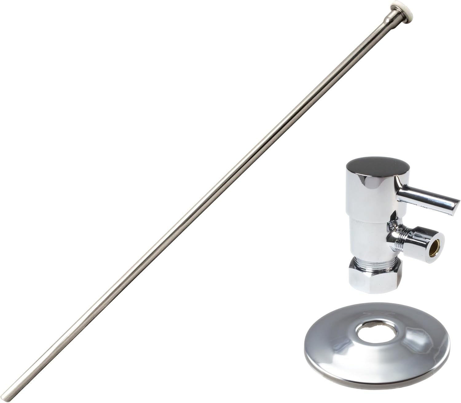 The Westbrass 5/8 in. compression (1/2 in. nominal copper pipe) inlet x 3/8 in OD outlet valve and mathching sure-grip escutcheon, combines with a 3/8 x 20 in. annealed copper toilet supply riser to make it easy to outfit your toilet. The kit includes everything required to supply water to your water closet, including an attractive modern lever handle angle stop, flange and flat head riser. Available in a variety of stylish finishes, this item is sure to complement your existing fixtures. Be sure to check out our other model styles and VISIT OUR WESTBRASS STOREFRONT for more Kitchen and Bath items to stylize your home with convenient functionality and beauty.