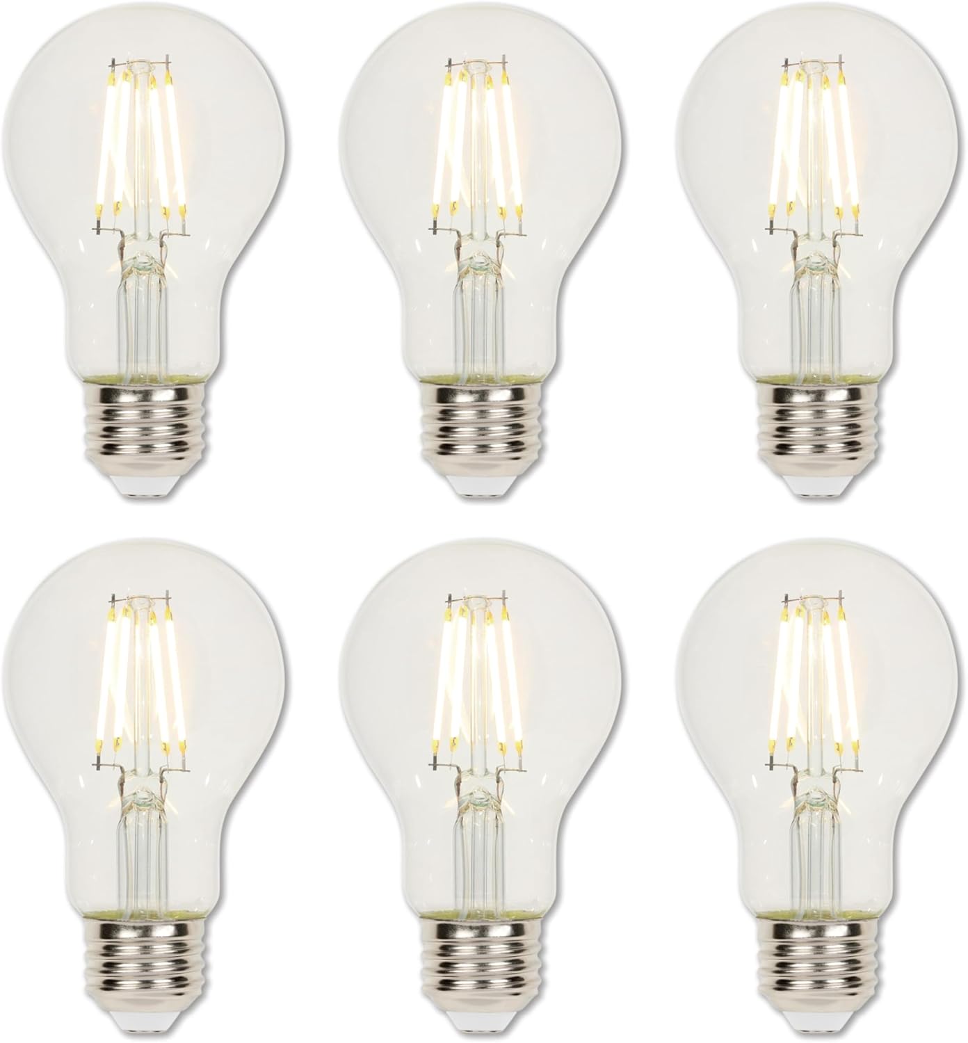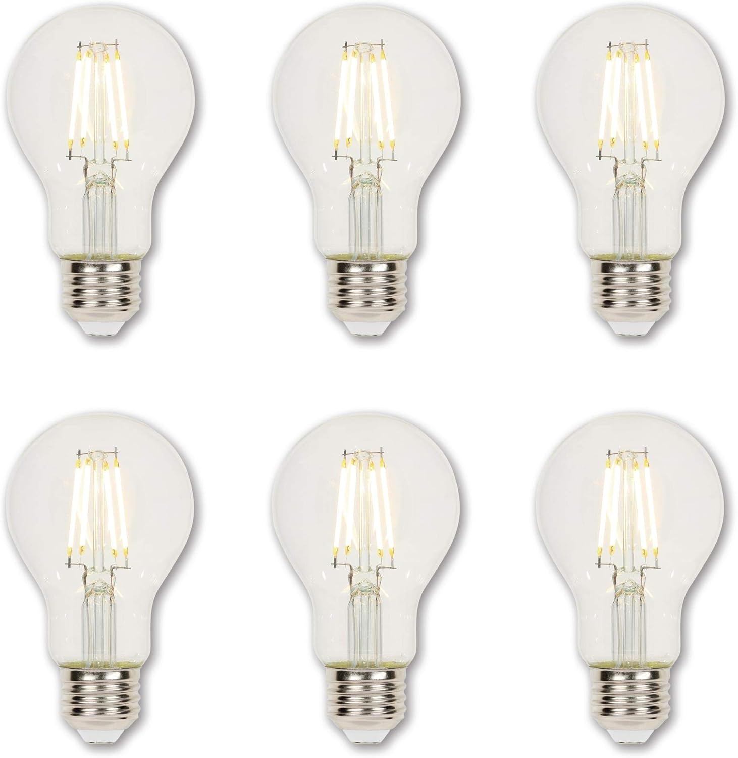 Westinghouse 5260020 10 Watt (100 Watt Equivalent) A19 Dimmable Clear Filament LED Light Bulb, Medium Base, 6 Pack