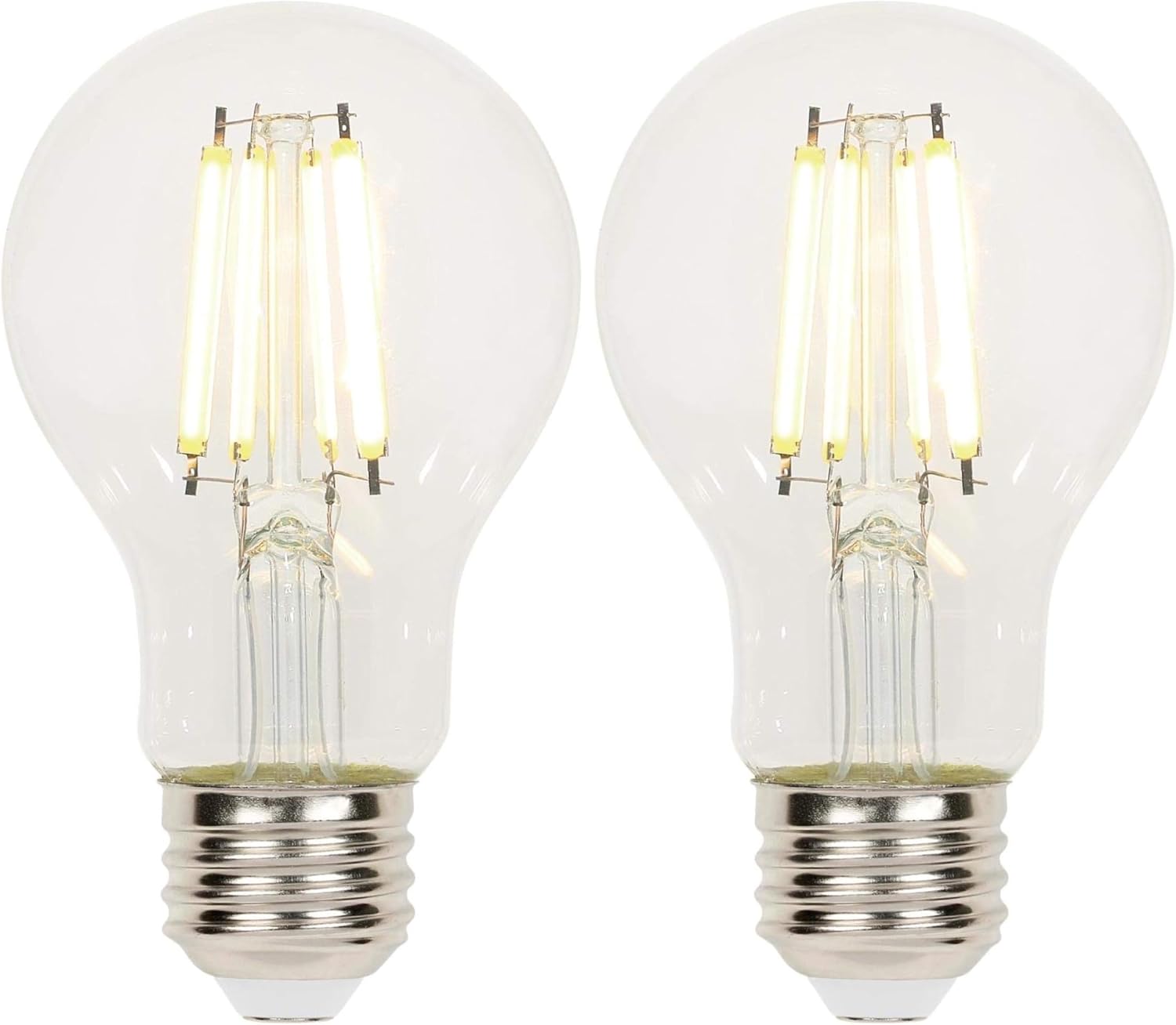 • Clear finish, exposed filament A19 LED bulbs are ideal for both decorative and general lighting, attractive in all types of fixtures with a medium-base E26 socket